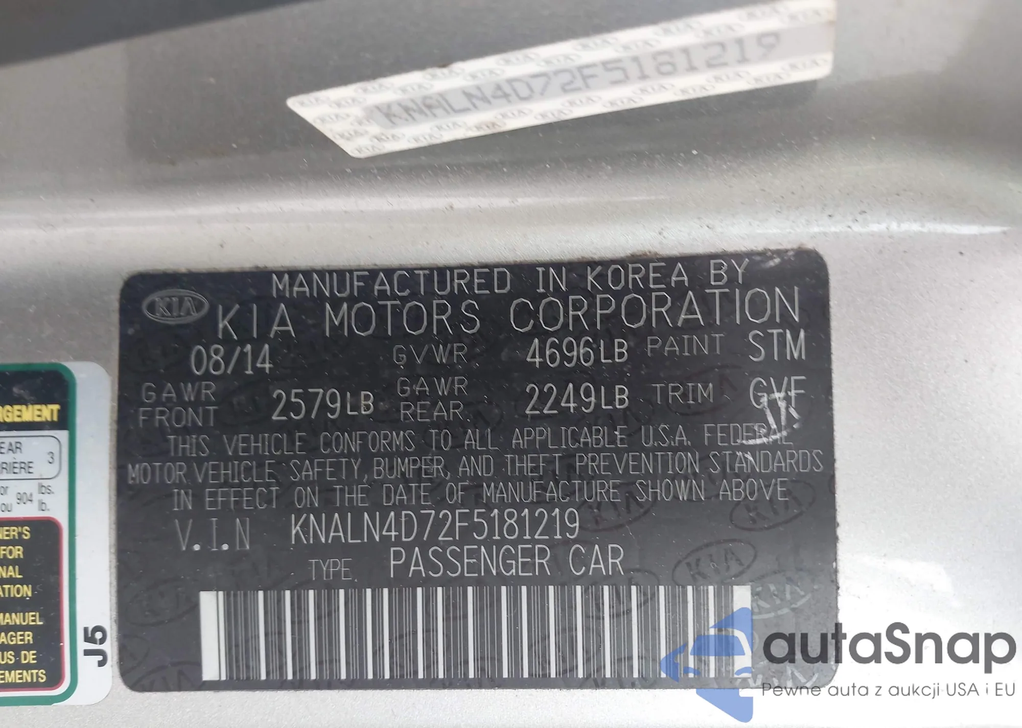 LOT: 44573310 VIN: KNALN4D72F5181219