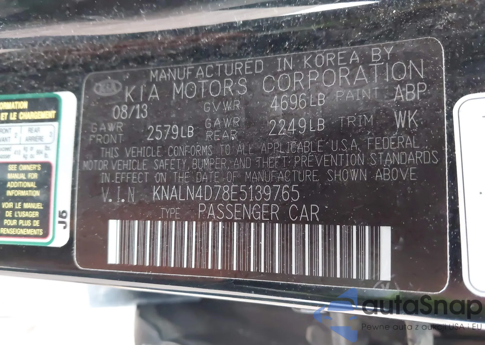 LOT: 44136533 VIN: KNALN4D78E5139765