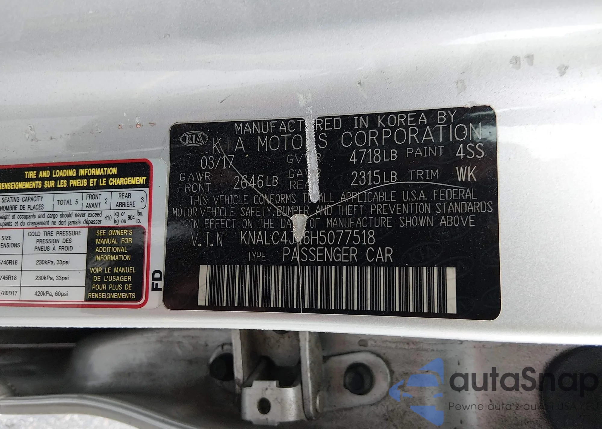 • VIN KNALC4J16H5077518