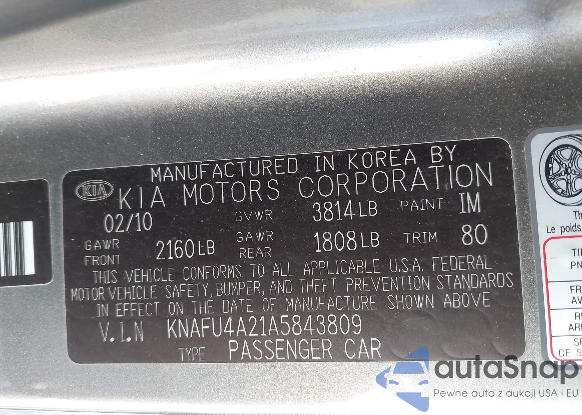 • VIN KNAFU4A21A5843809