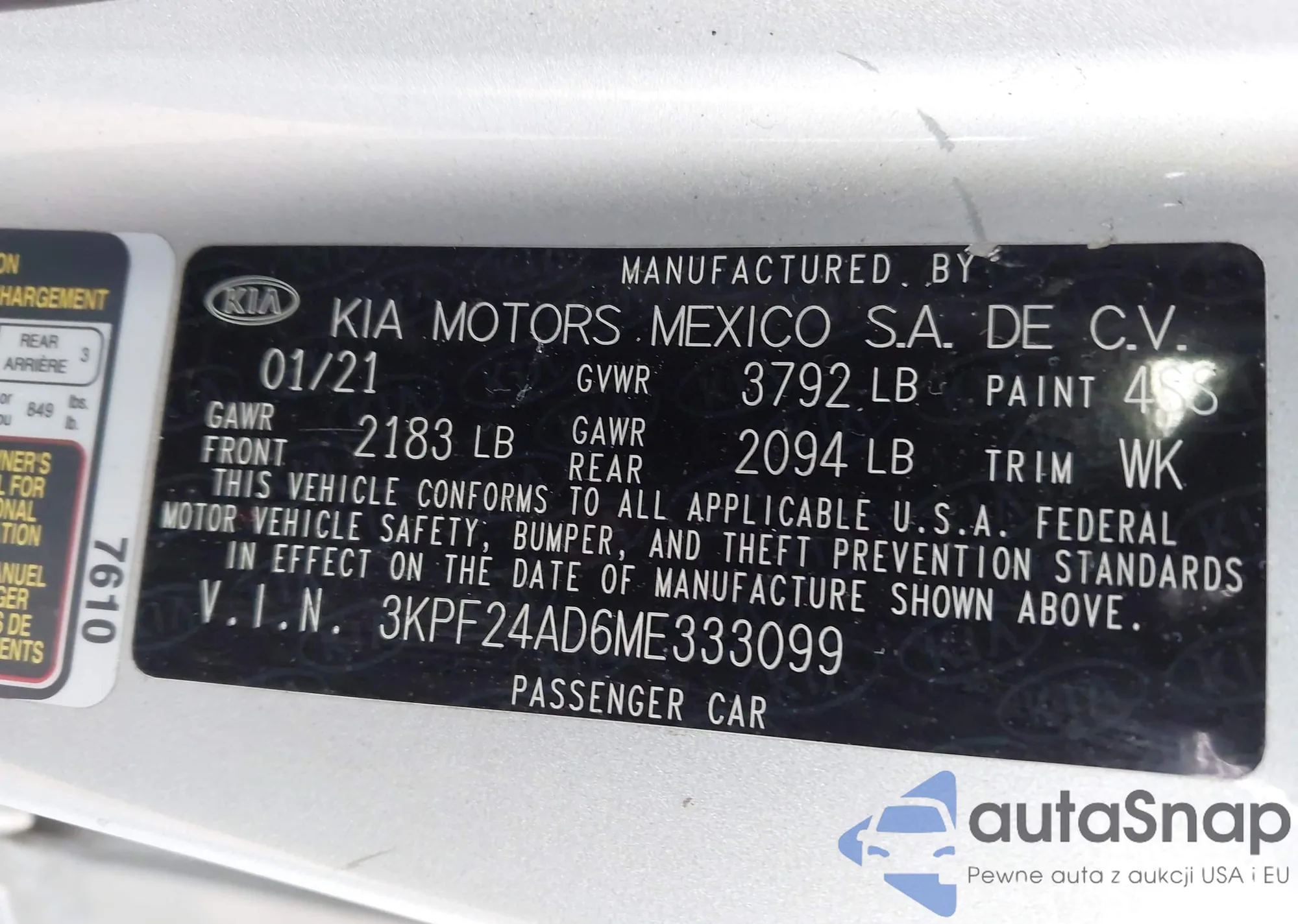 • VIN 3KPF24AD6ME333099
