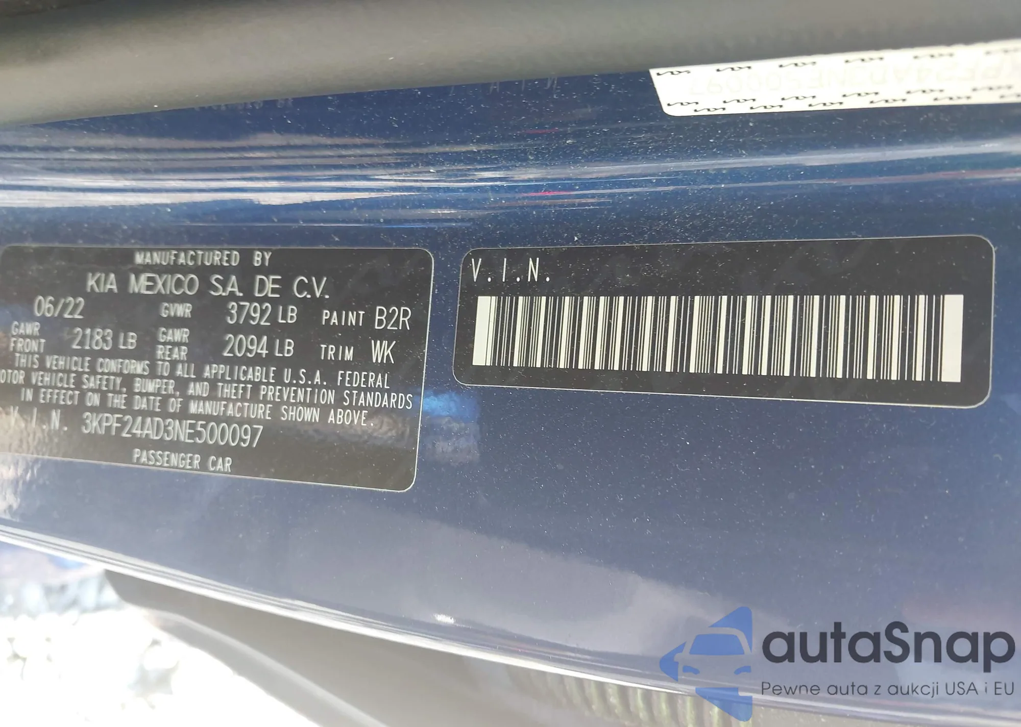 • VIN 3KPF24AD3NE500097