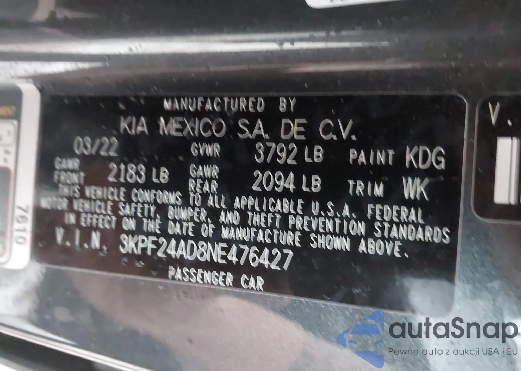 • VIN 3KPF24AD8NE476427