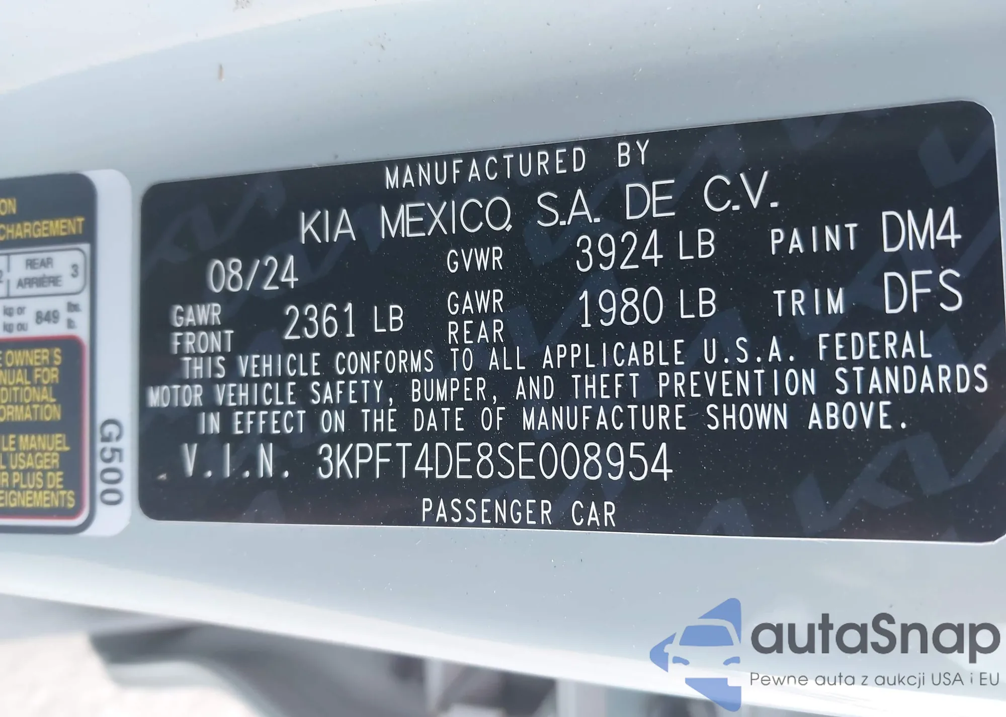 • VIN 3KPFT4DE8SE008954