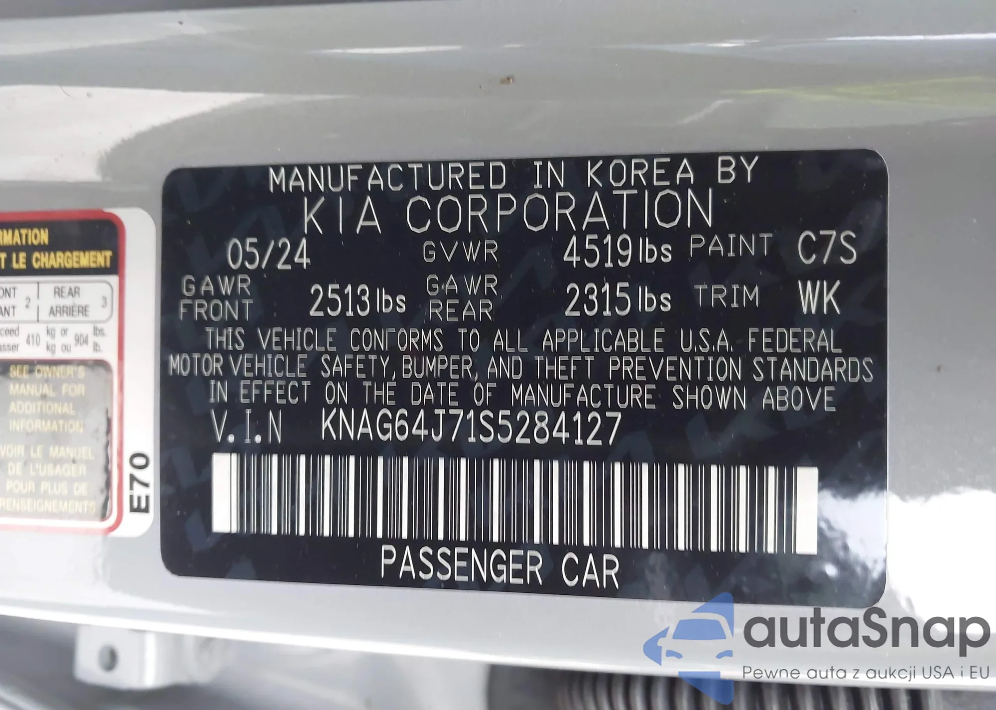 • VIN KNAG64J70S5274219