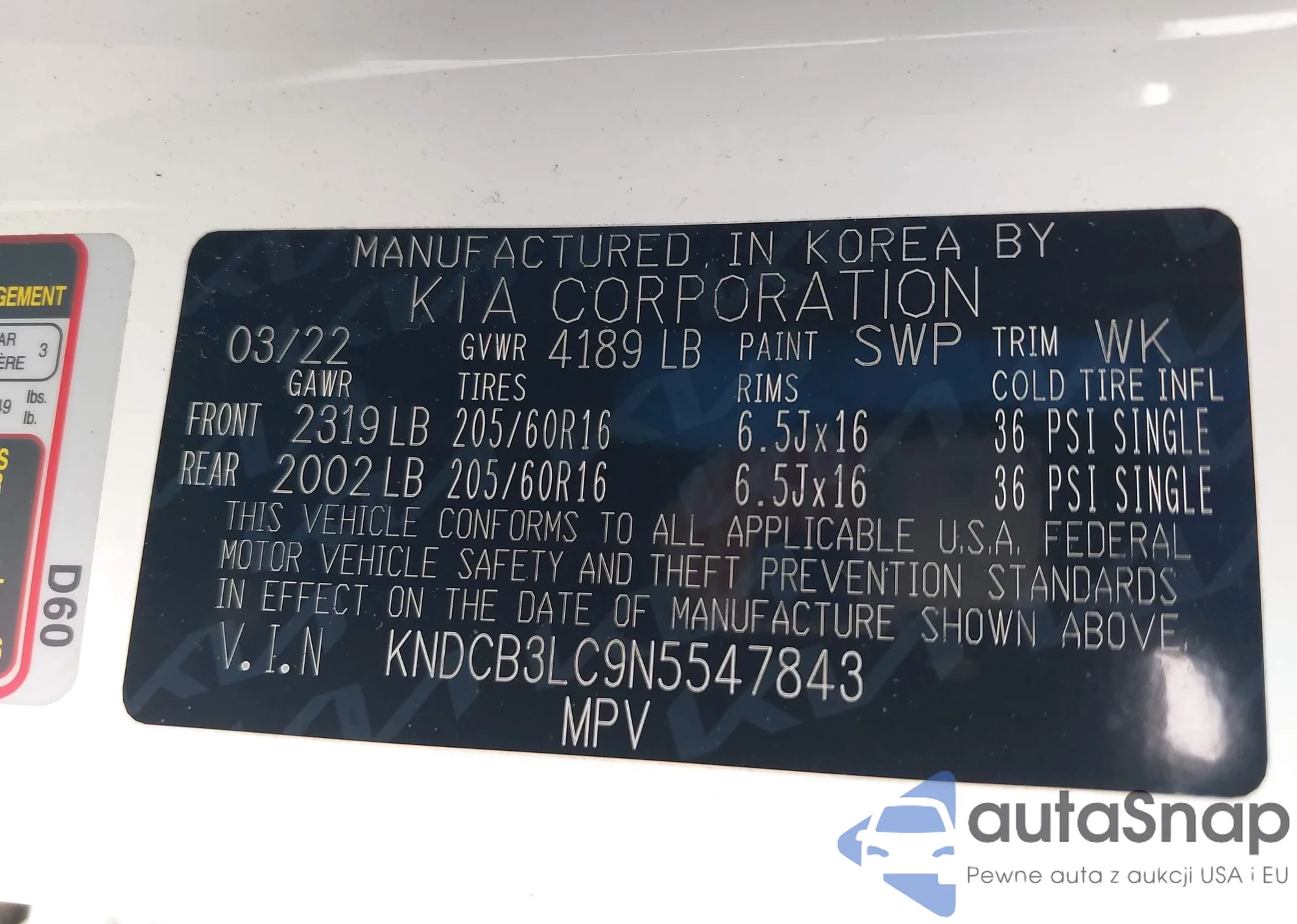 • VIN KNDCB3LC9N5547843