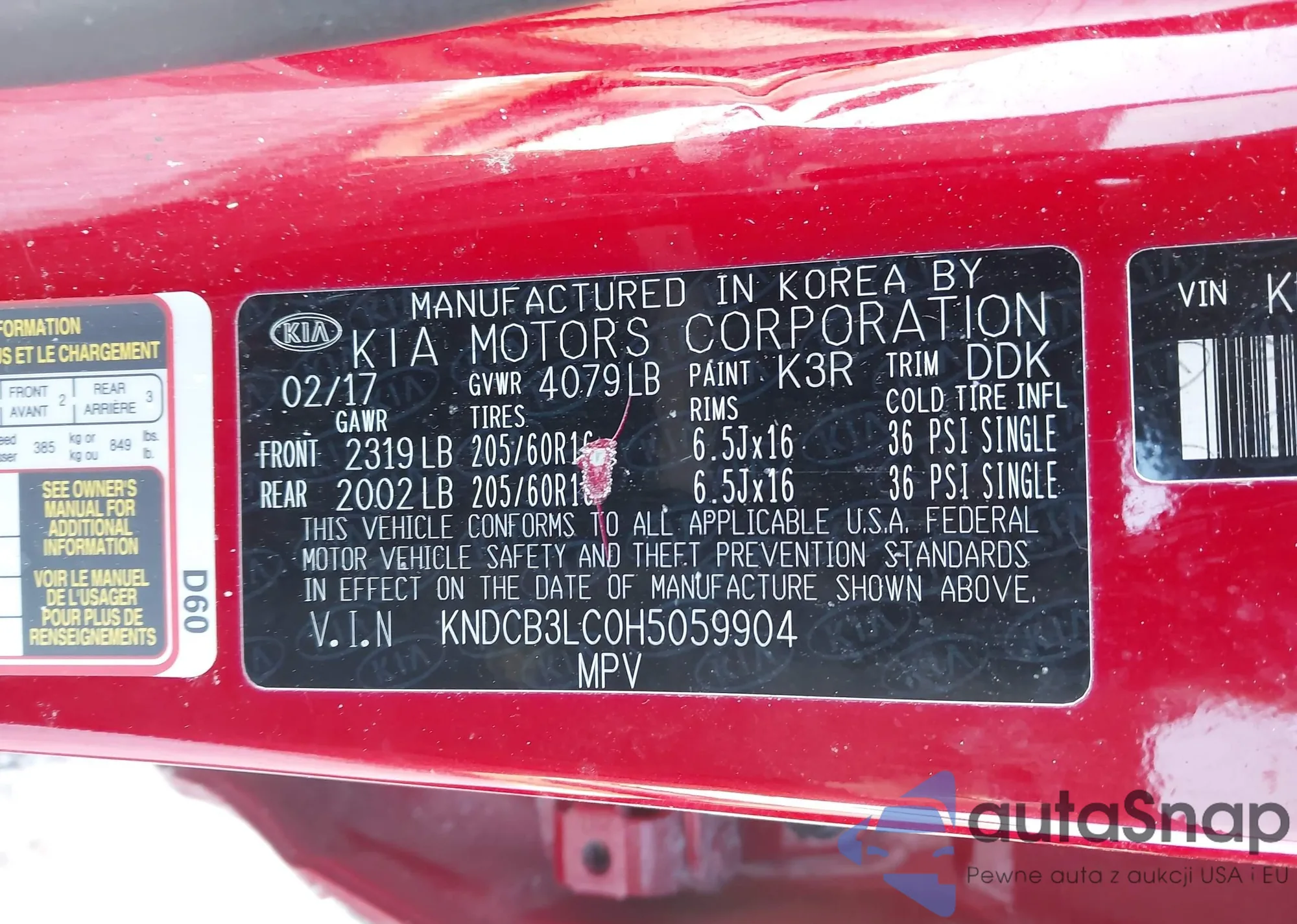 • VIN KNDCB3LC0H5059904