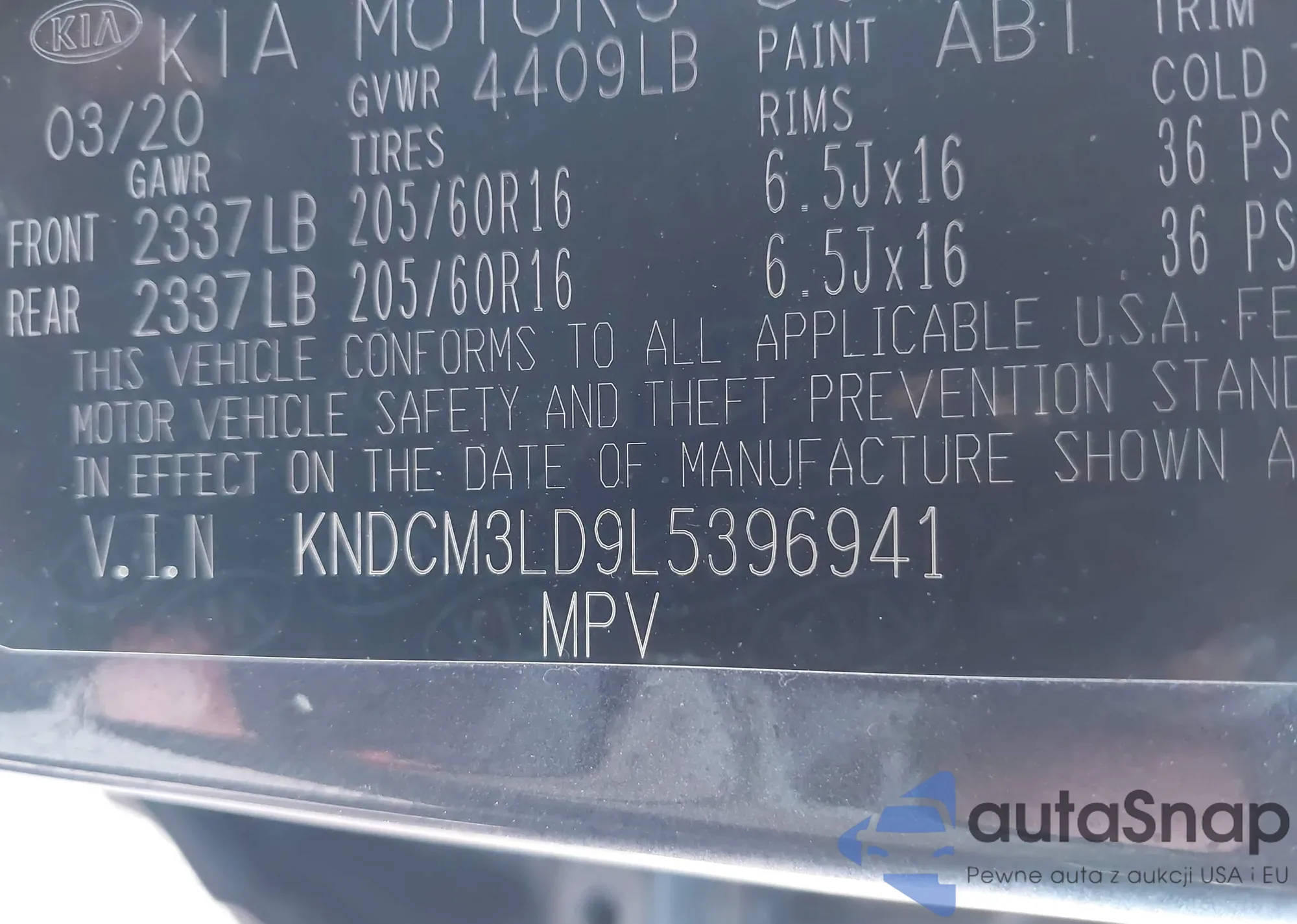 • VIN KNDCM3LD9L5396941