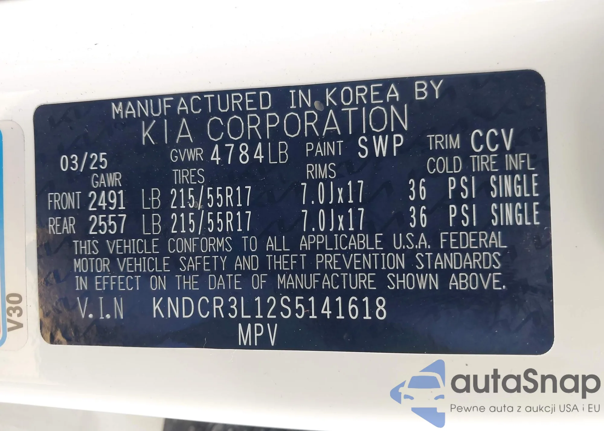 • VIN KNDCR3L12S5141618