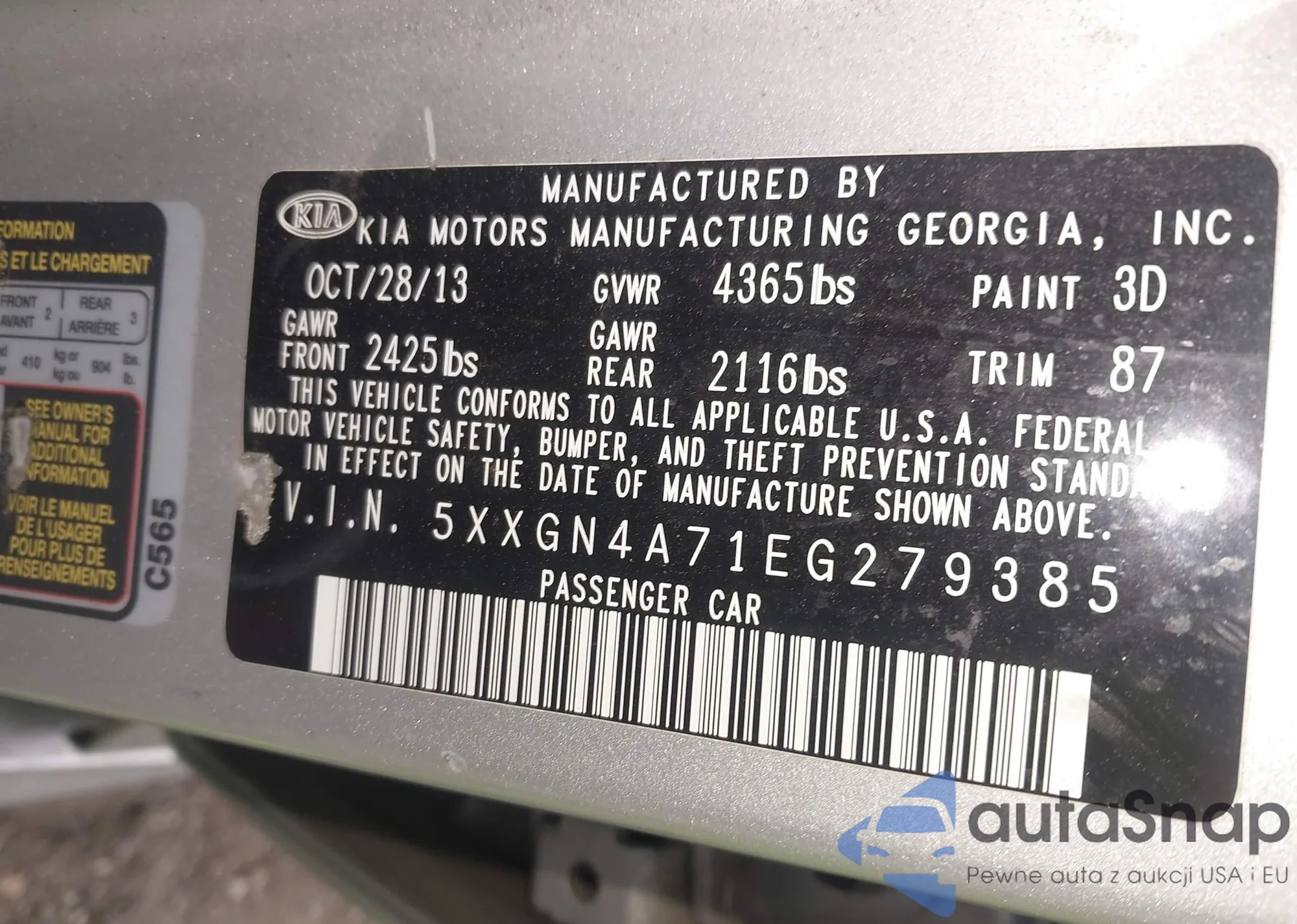 LOT: 39336517 VIN: 5XXGN4A77DG257308