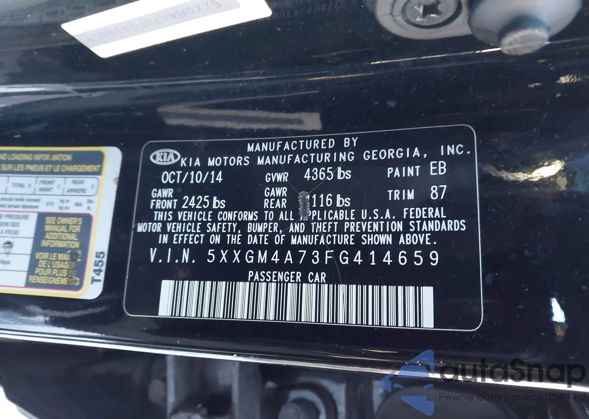 LOT: 44203802 VIN: 5XXGM4A73FG414659