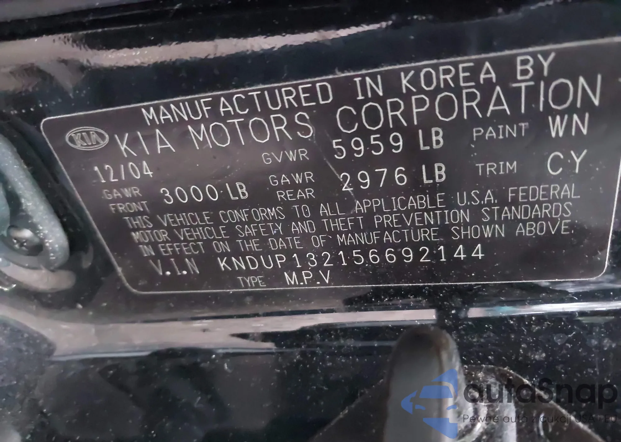 LOT: 43863393 VIN: KNDUP132156692144