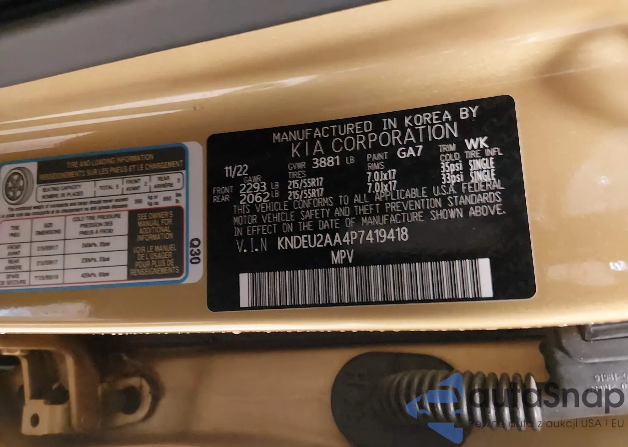 • VIN KNDEU2AA4P7419418