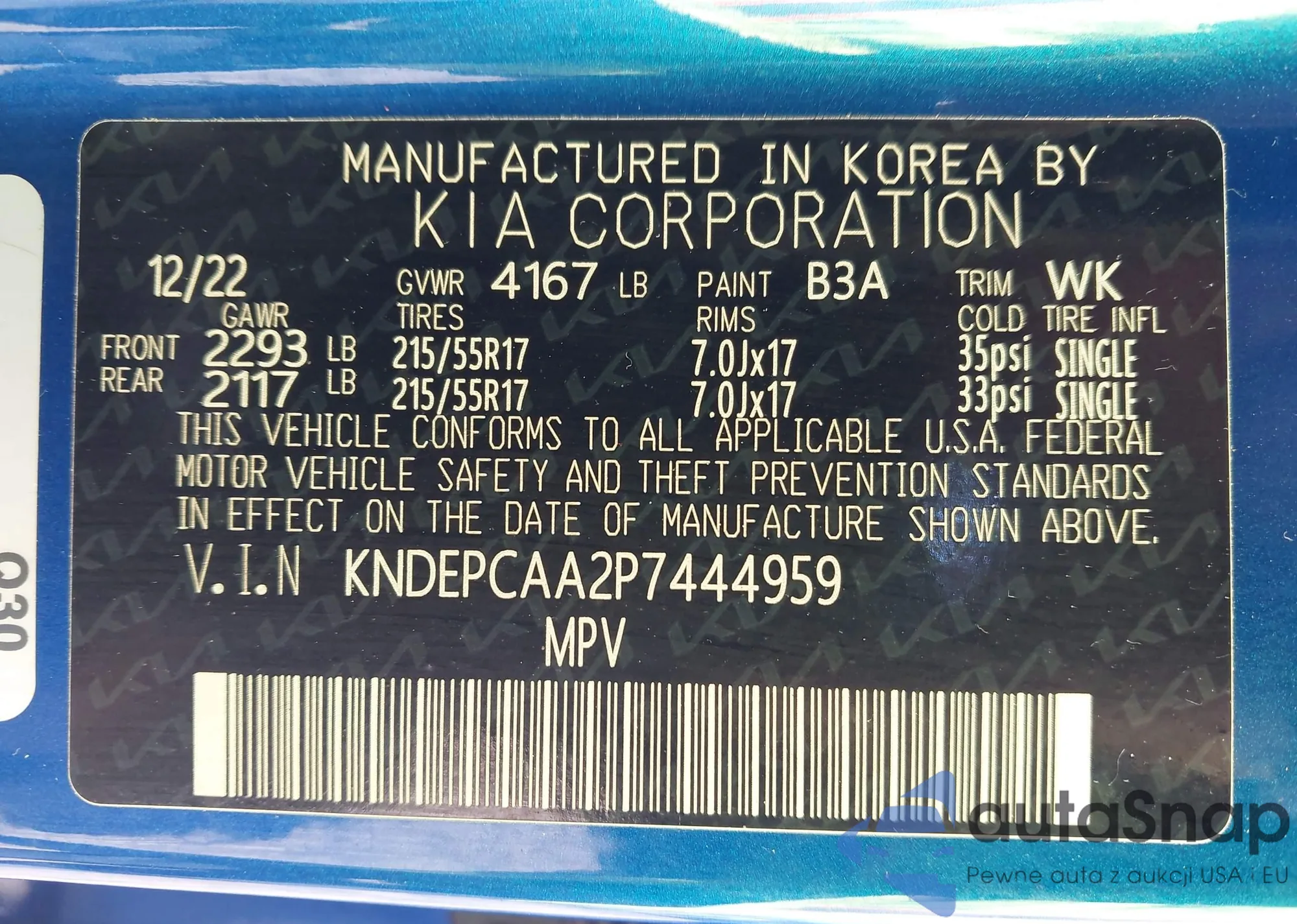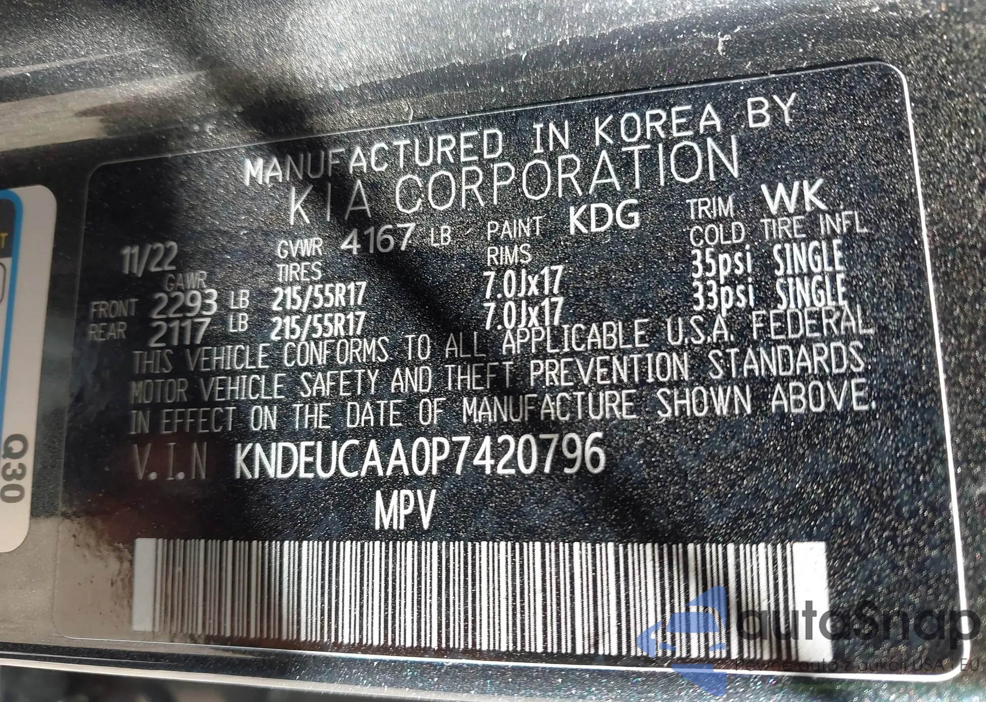 • VIN KNDER2AA7S7749645