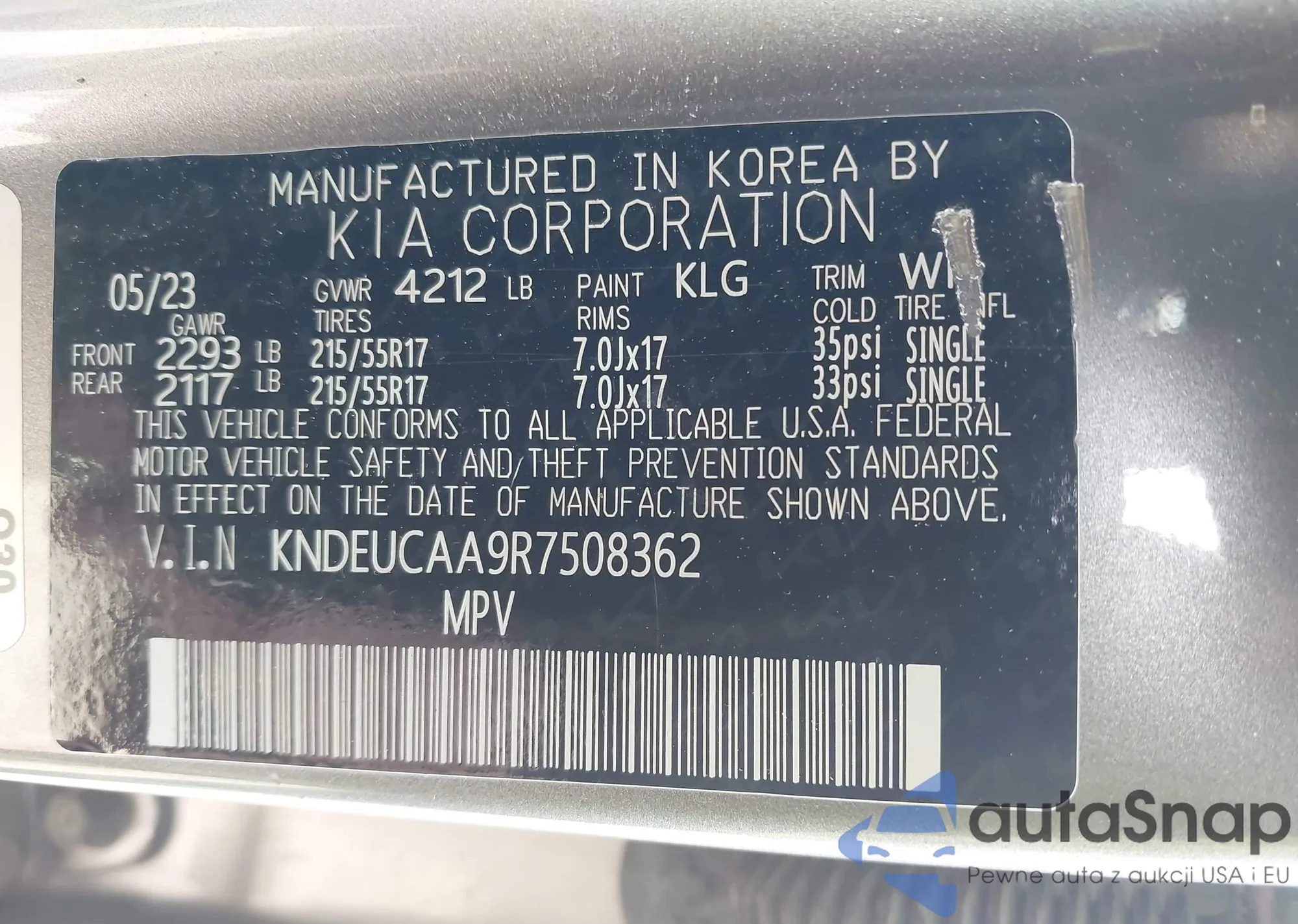 • VIN KNDEUCAA9R7508362