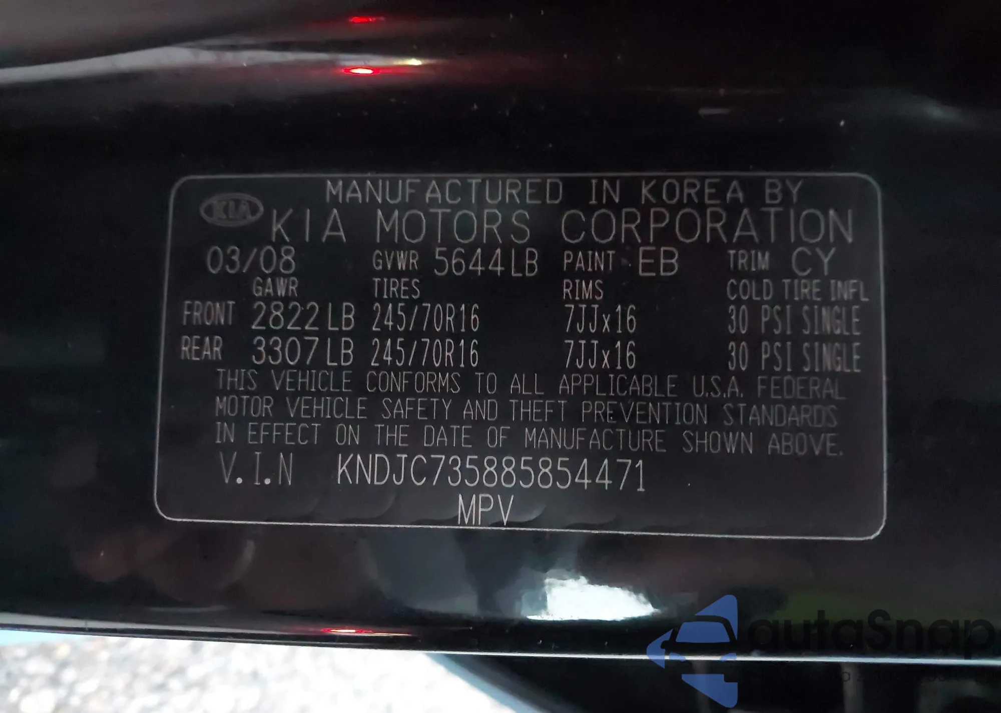 • VIN KNDJC735885854471