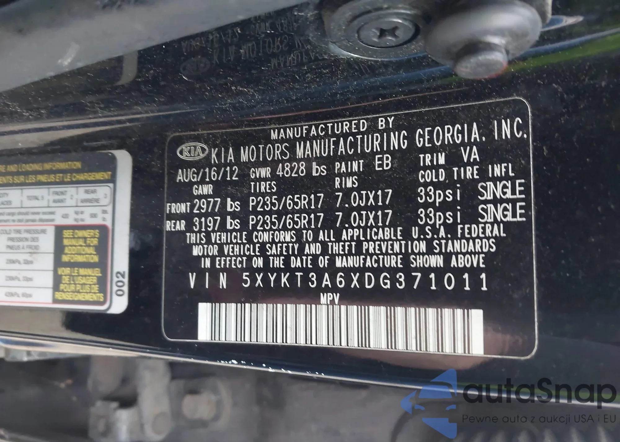 • VIN 5XYKT3A6XDG371011