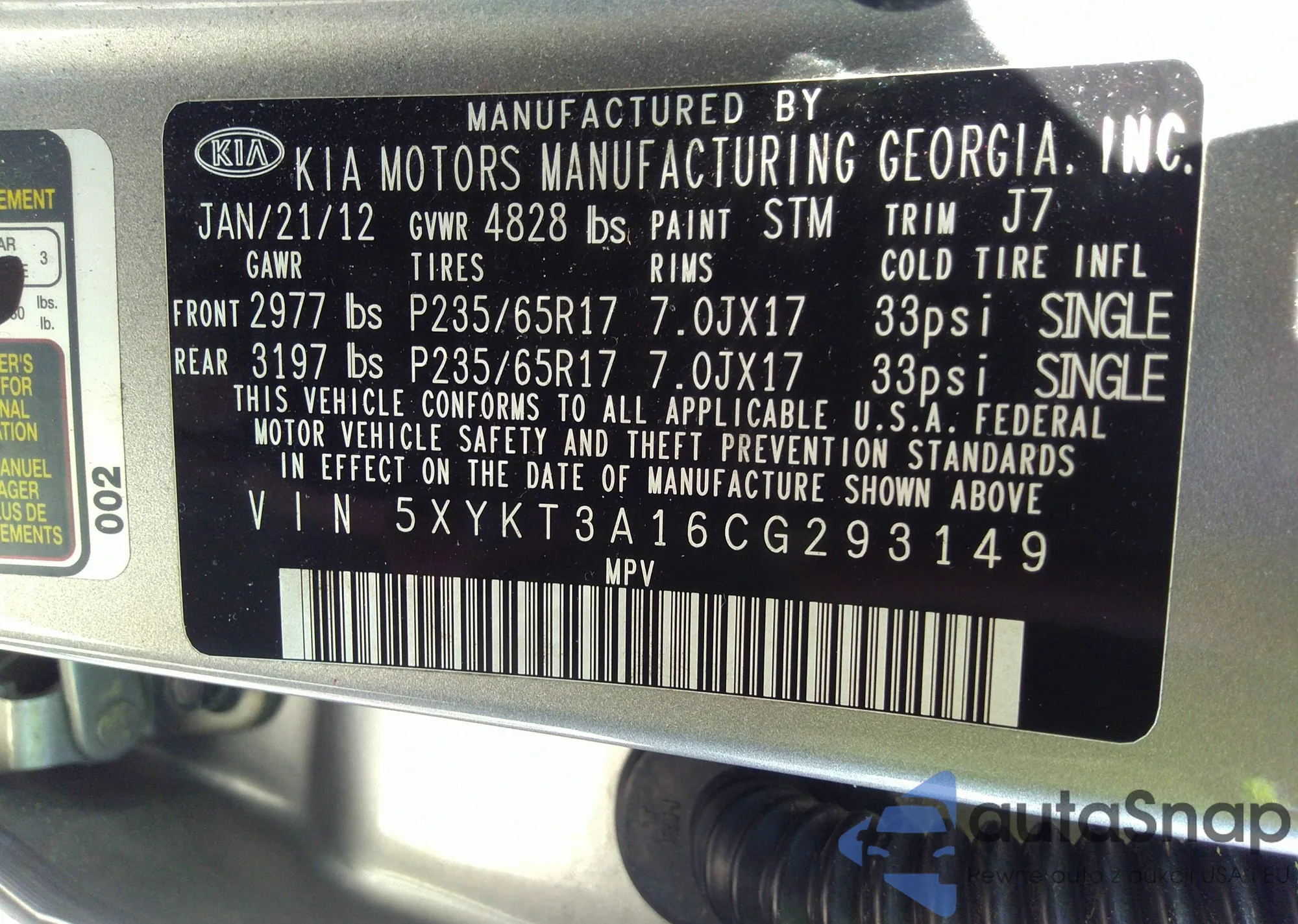 • VIN 5XYKT4A67DG393456