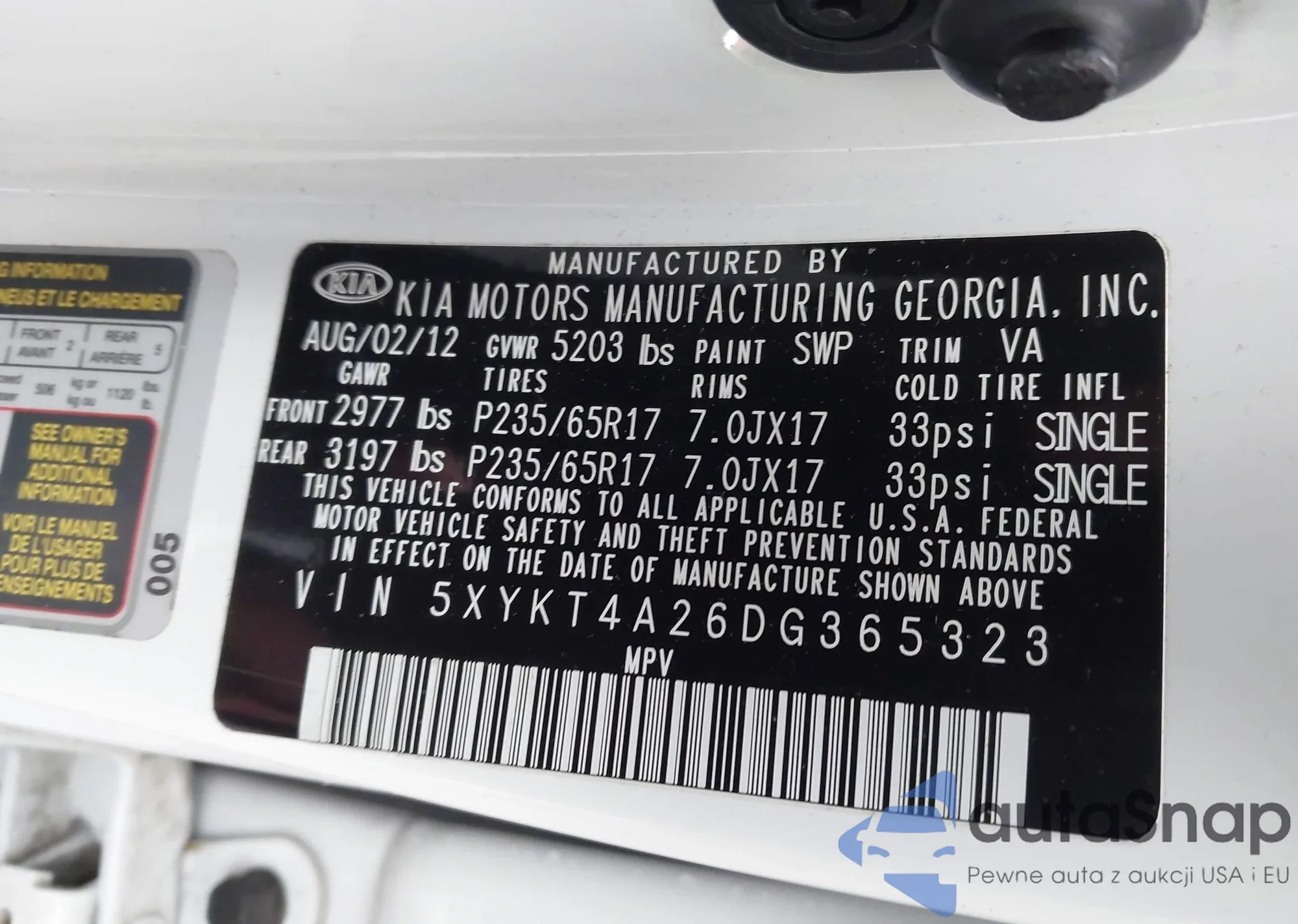 • VIN 5XYKT4A26DG365323