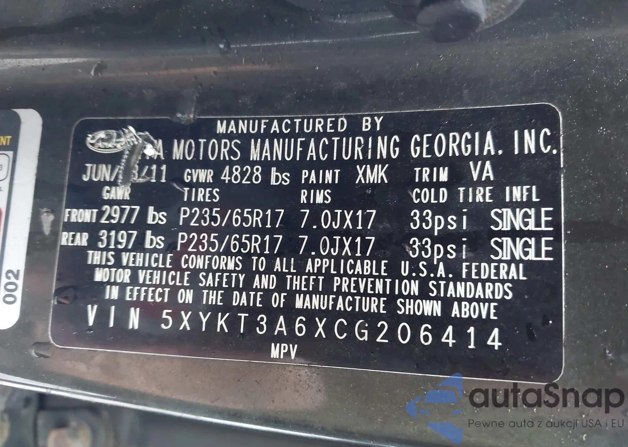 • VIN 5XYKT4A6XCG206337