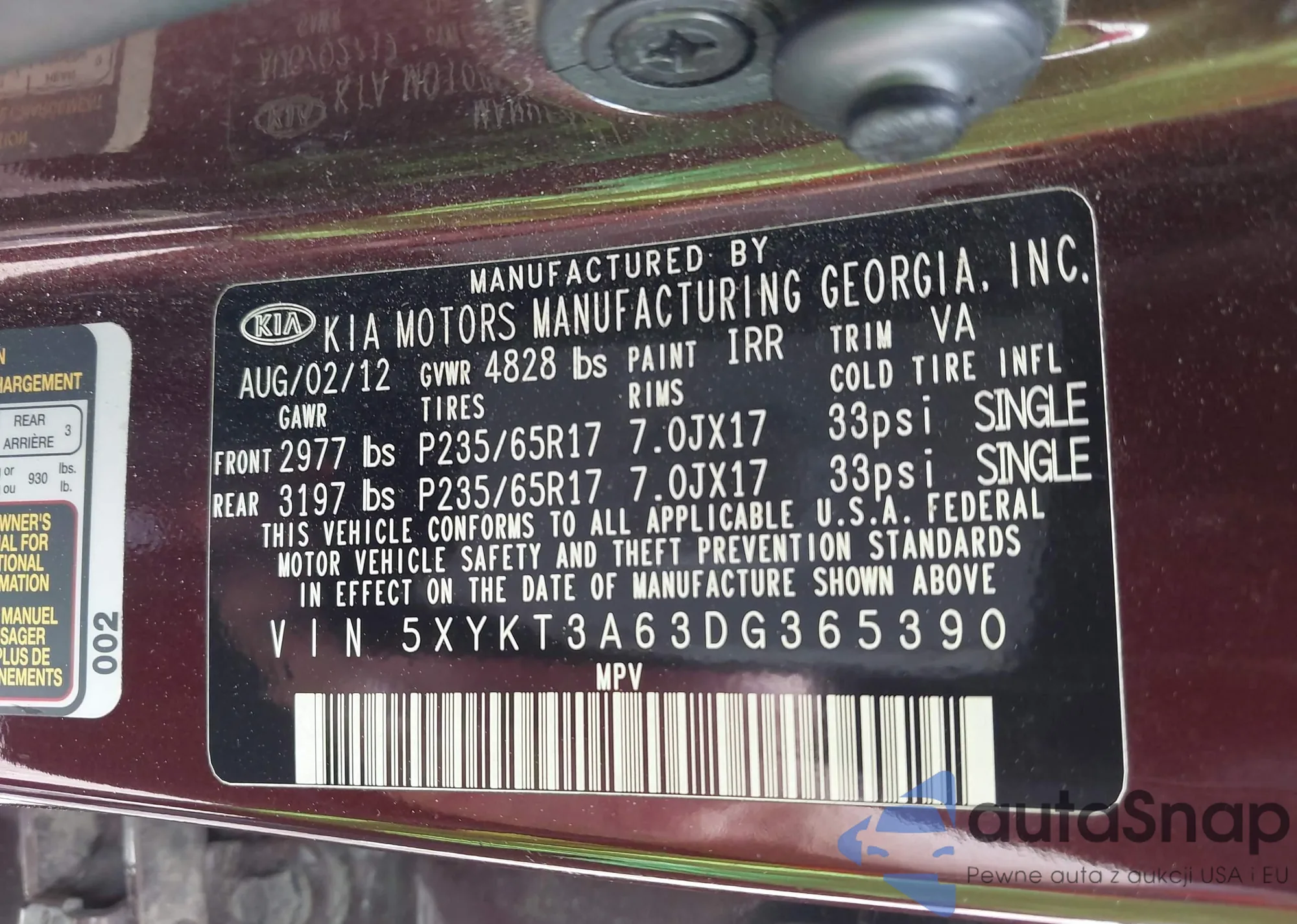 • VIN 5XYKT3A63DG365390