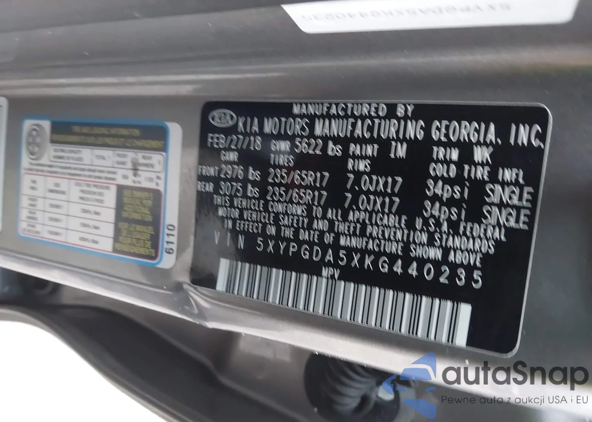 • VIN 5XYPGDA5XKG440235