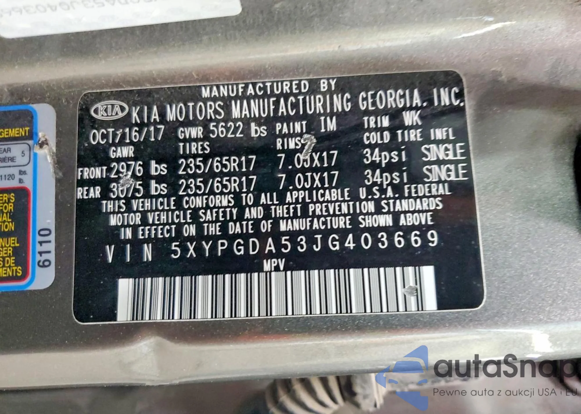 • VIN 5XYPGDA53JG403669