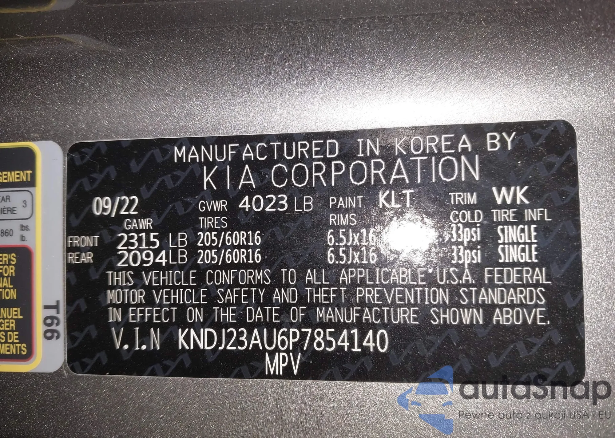 • VIN KNDJ23AU6P7854140