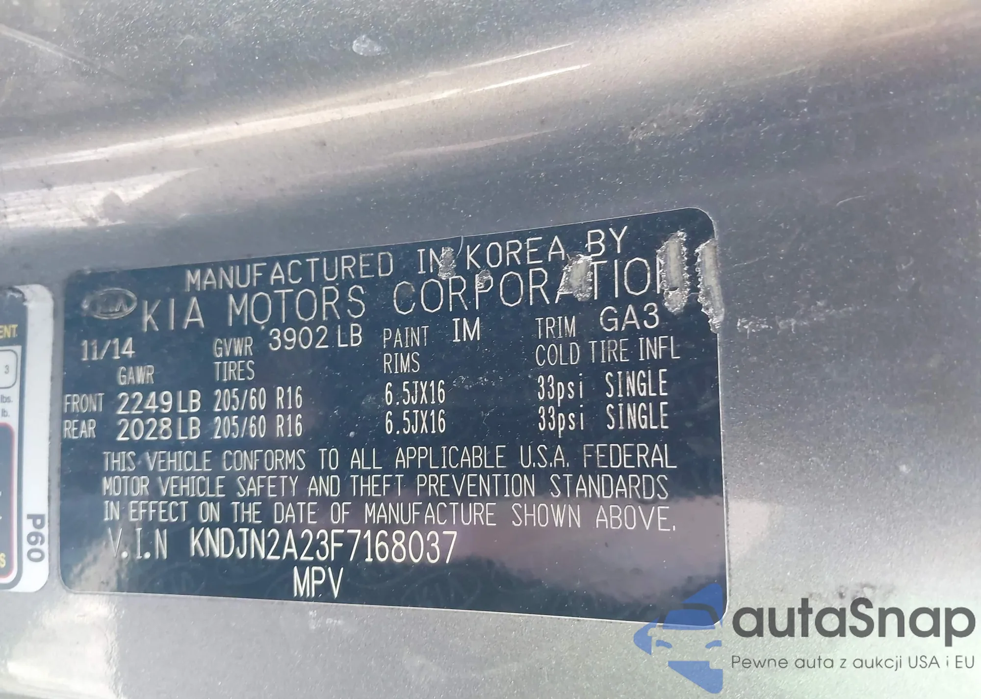 LOT: 44283679 VIN: KNDJN2A23F7168037
