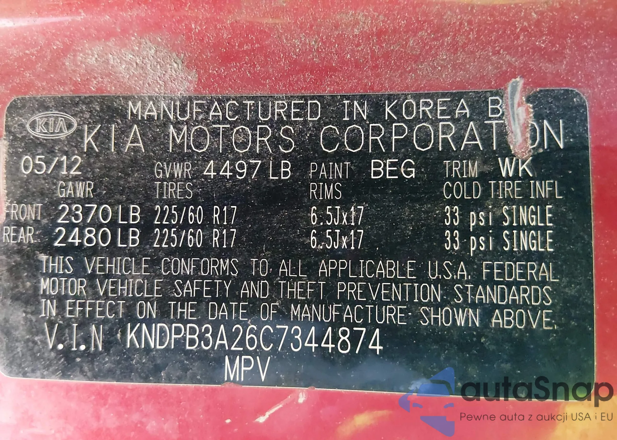 • VIN KNDPB3A26C7344874