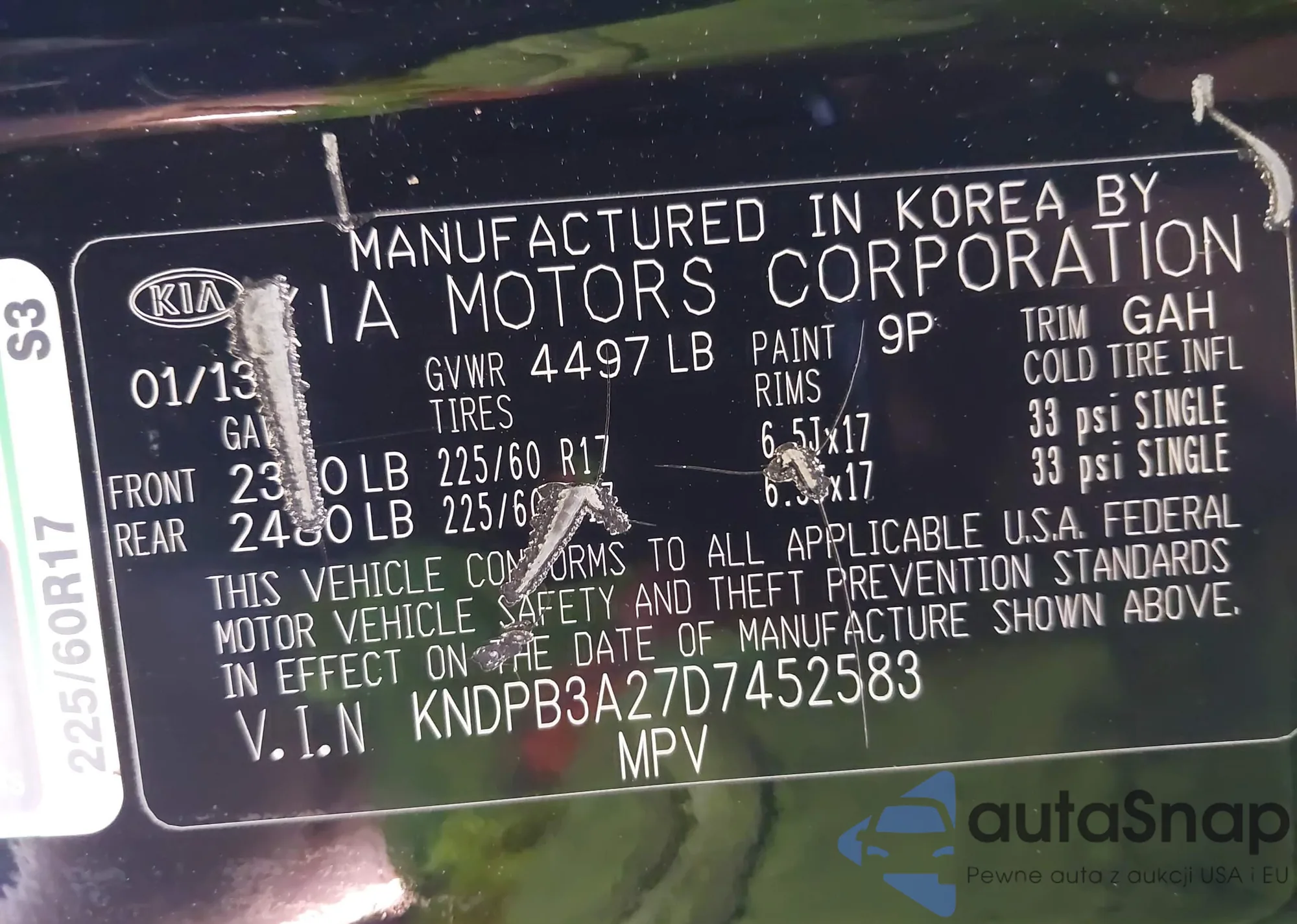 • VIN KNDPB3A27D7452583