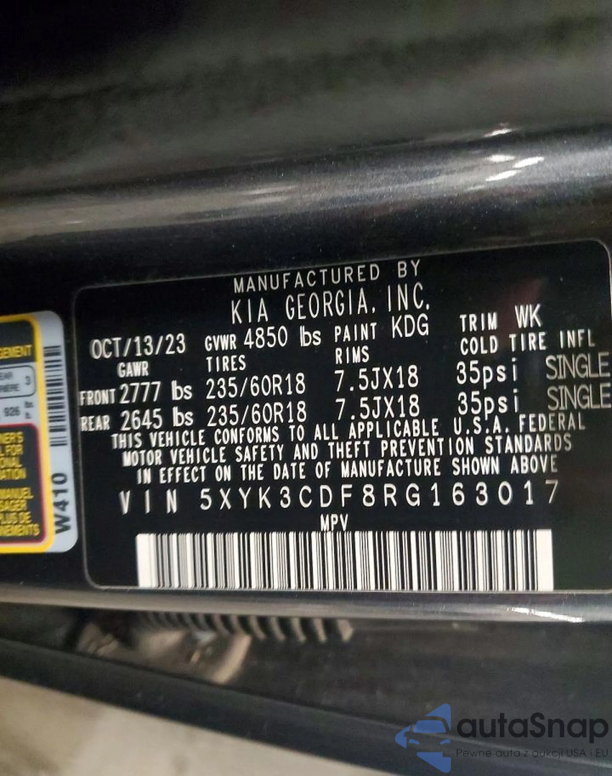 • VIN 5XYK3CDF8RG163017