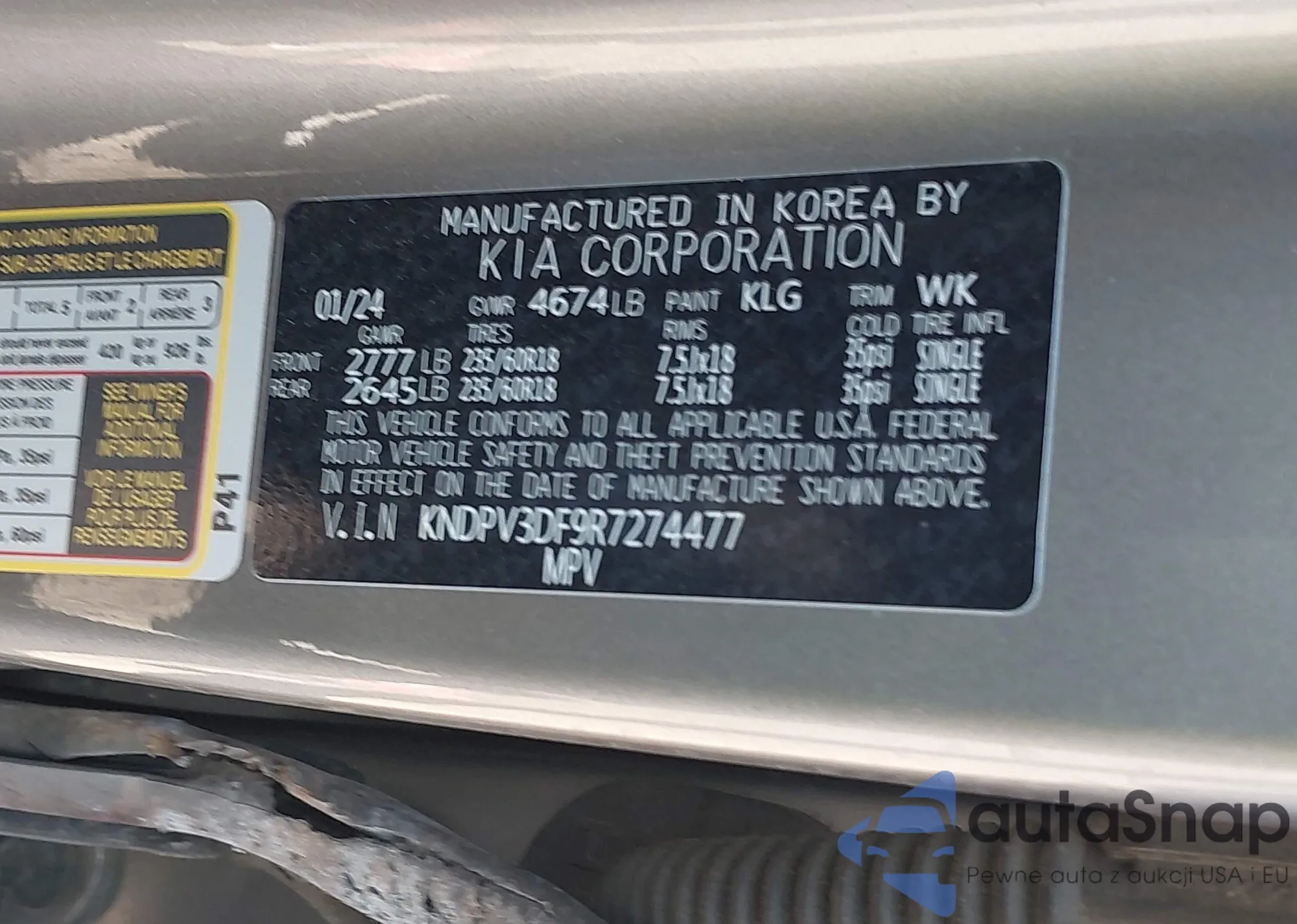 • VIN KNDPV3DF9R7274477