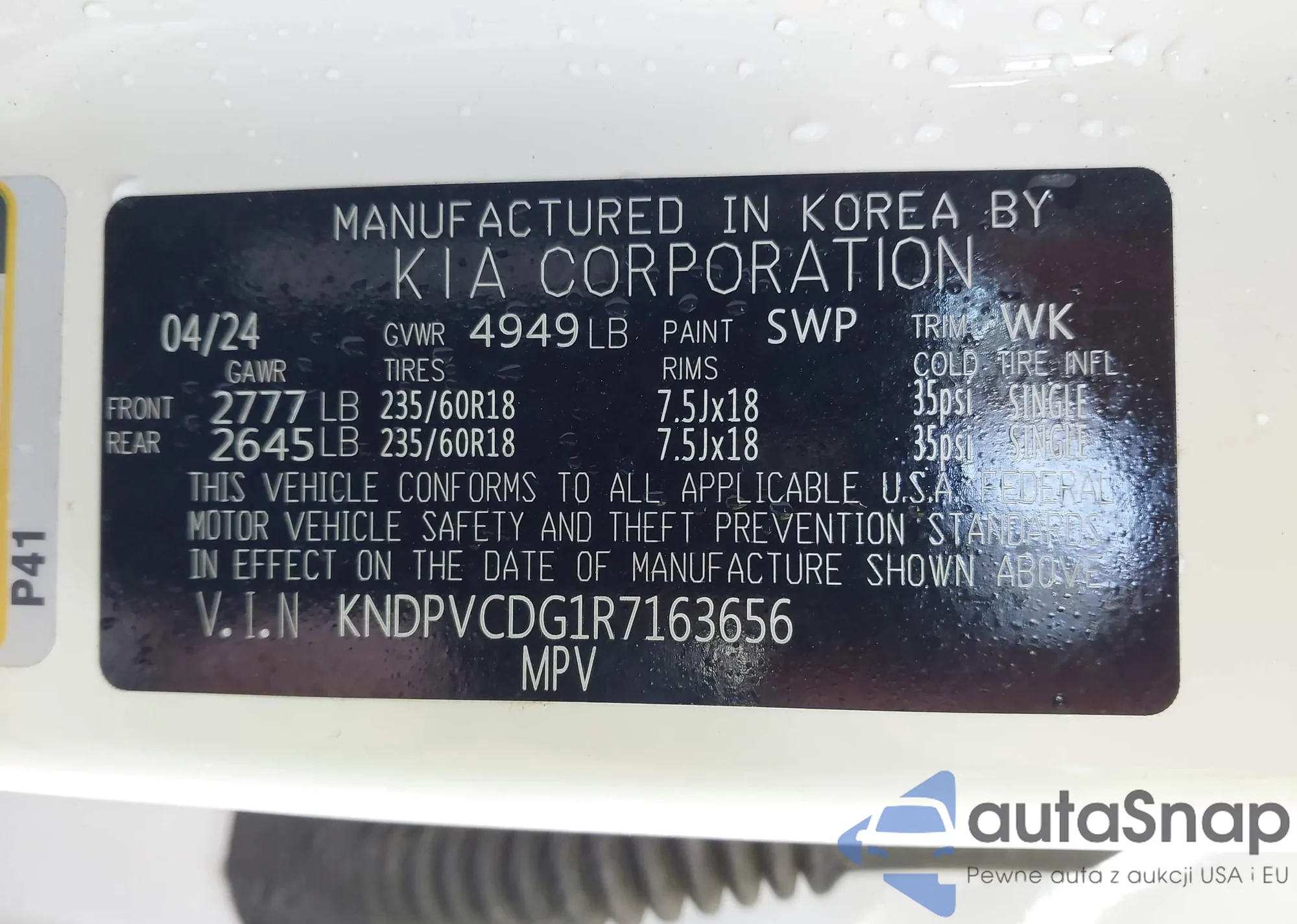 • VIN KNDPRCA69J7370378