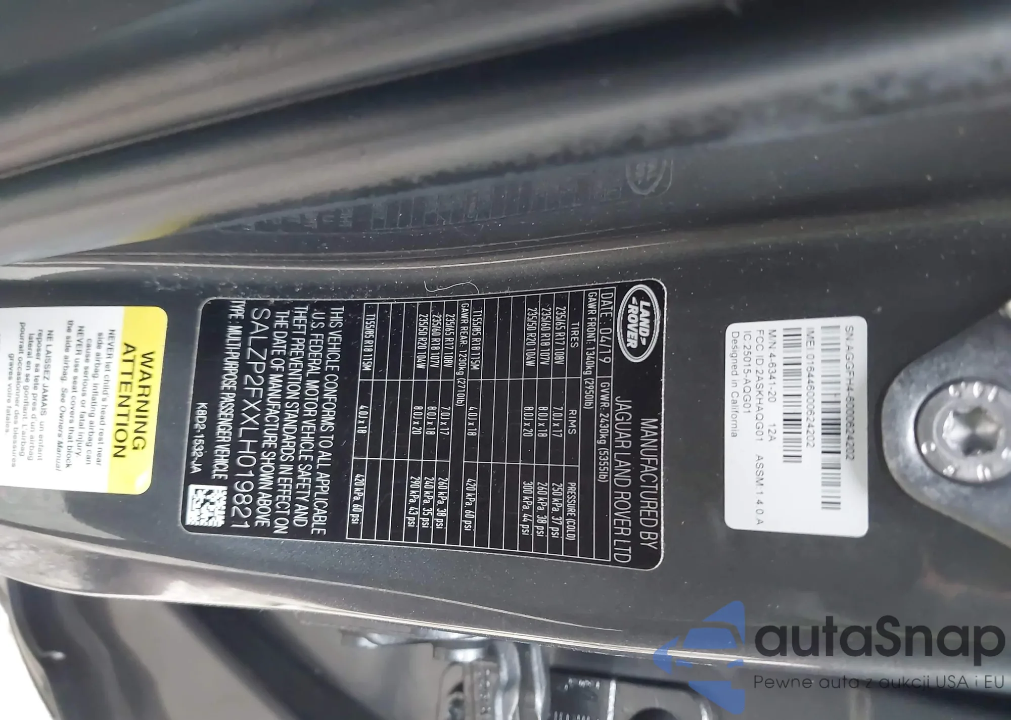 LOT: 43590538 VIN: SALZP2FXXLH019821
