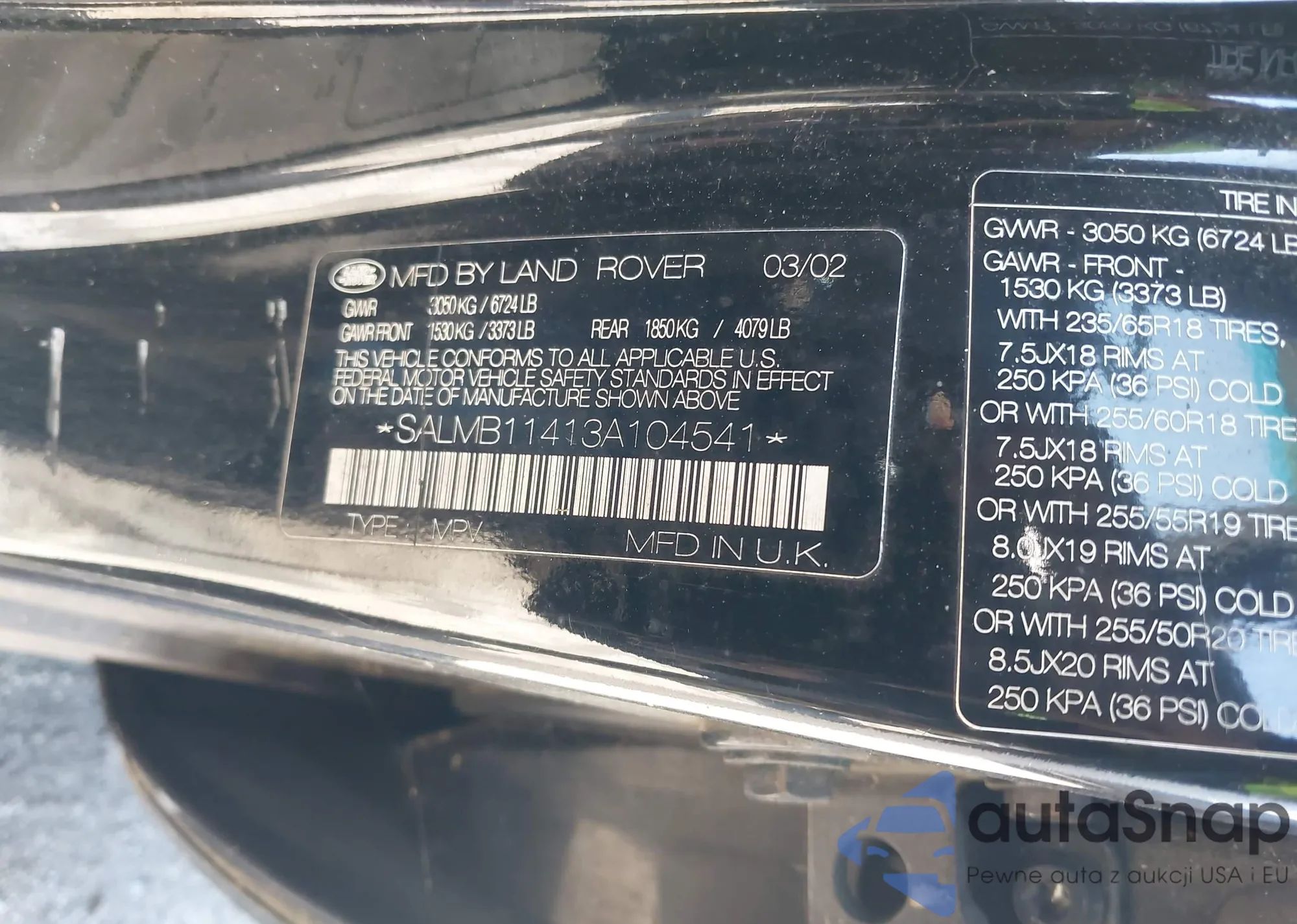 • VIN SALMB11413A104541