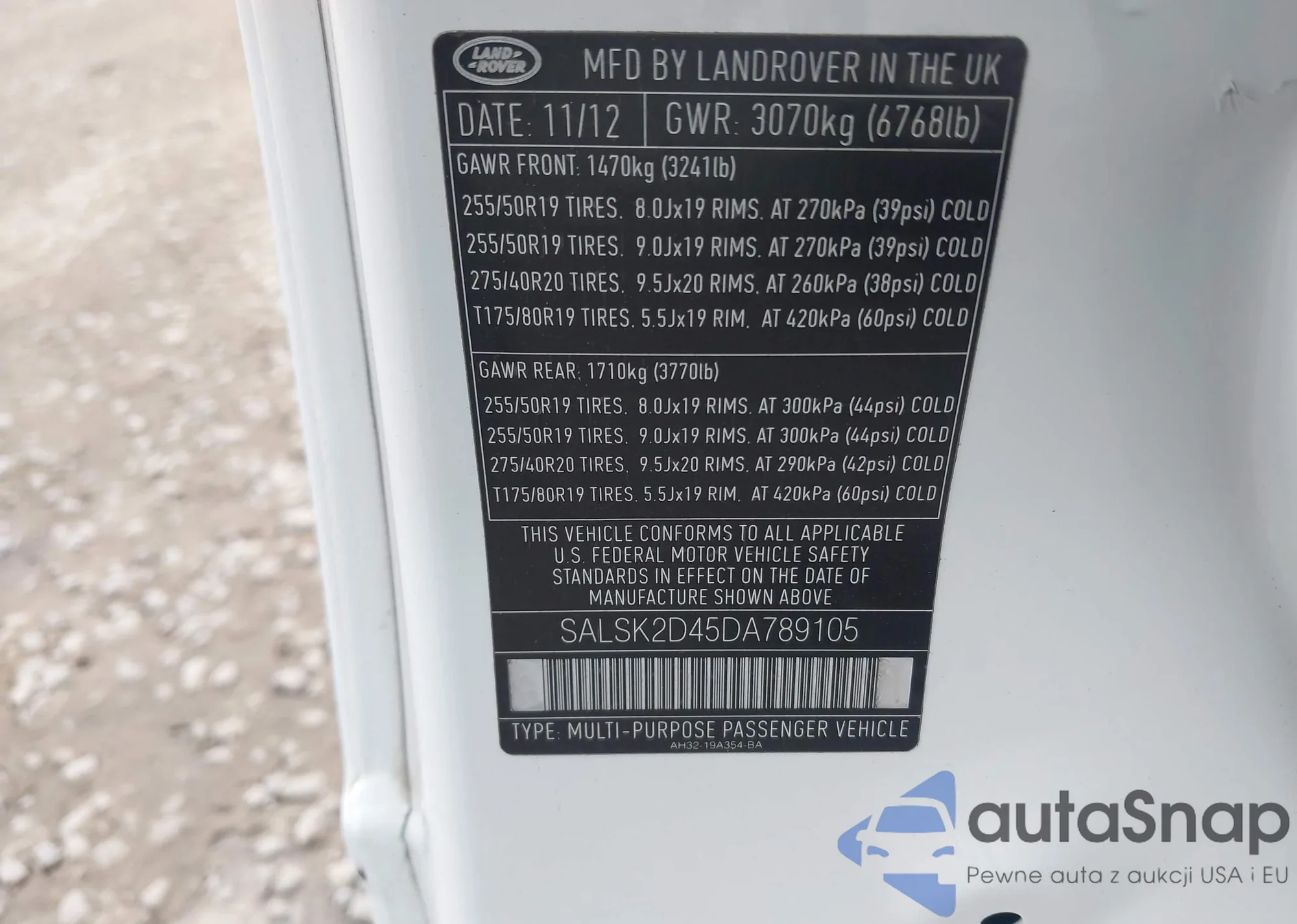 • VIN SALSK2D45DA789105