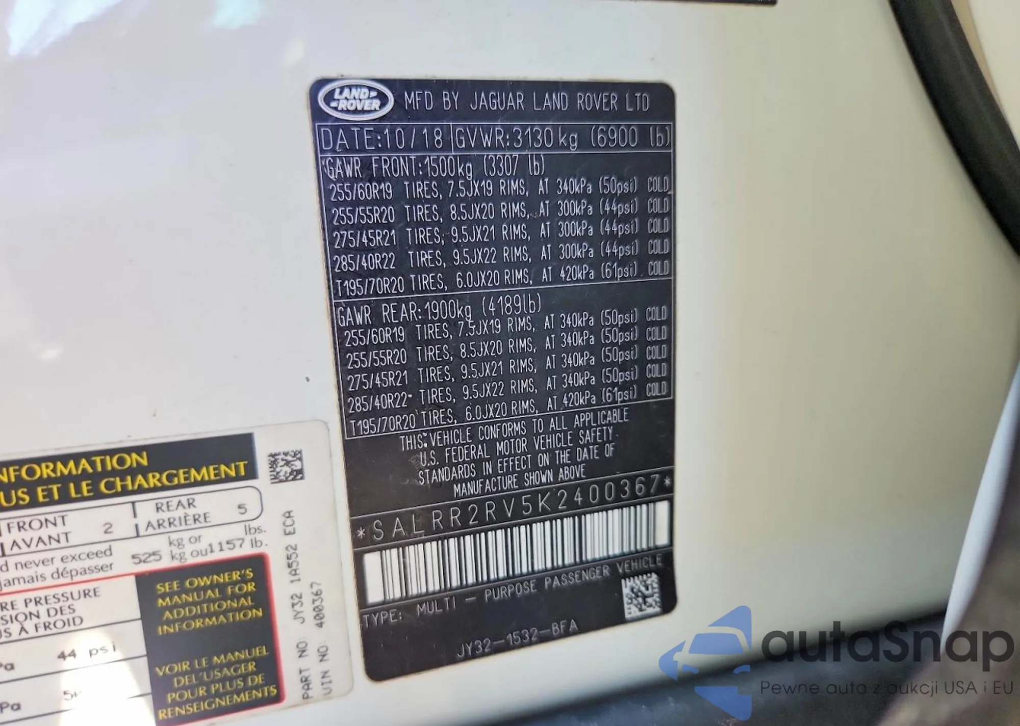 LOT: 75116345 VIN: SALRR2RV5K2400367