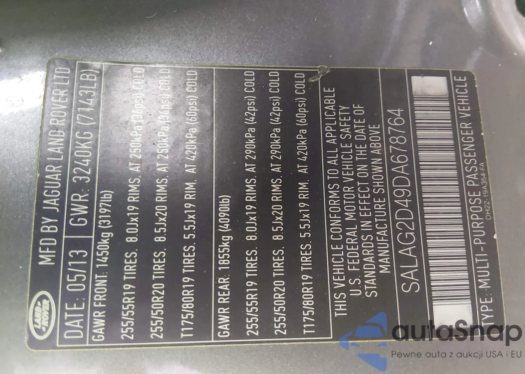 • VIN SALAG2D49DA678764