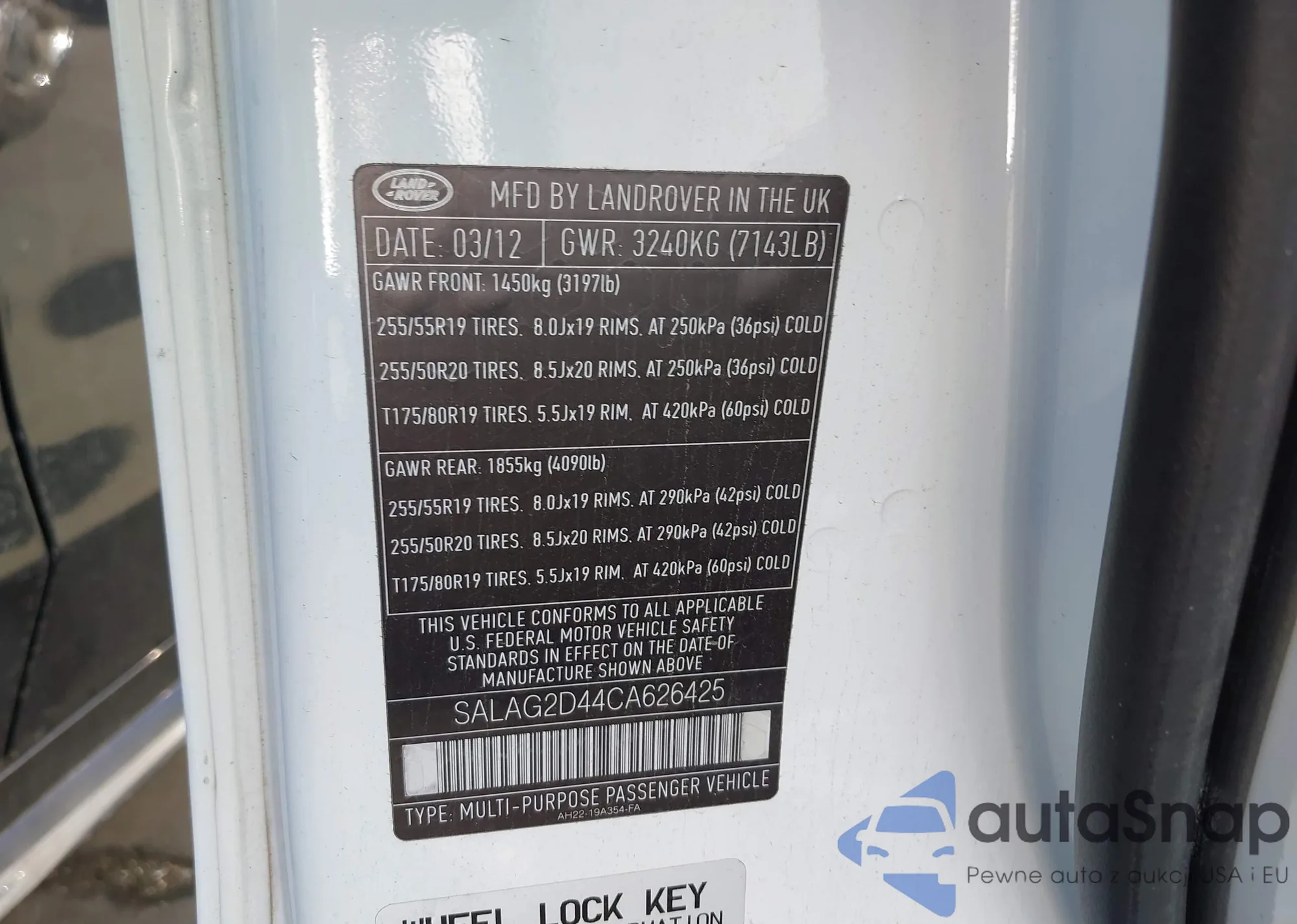 LOT: 44311110 VIN: SALAG2D44CA626425