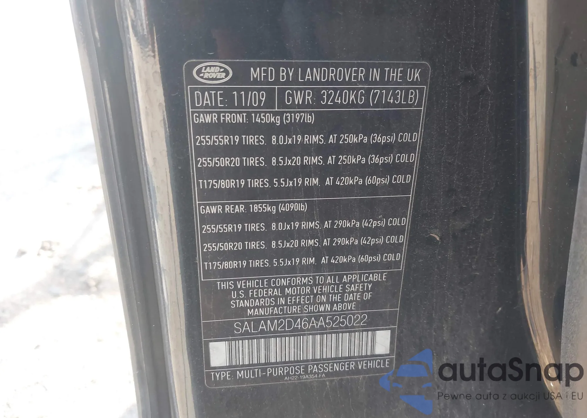 LOT: 44323272 VIN: SALAG2D46AA534424