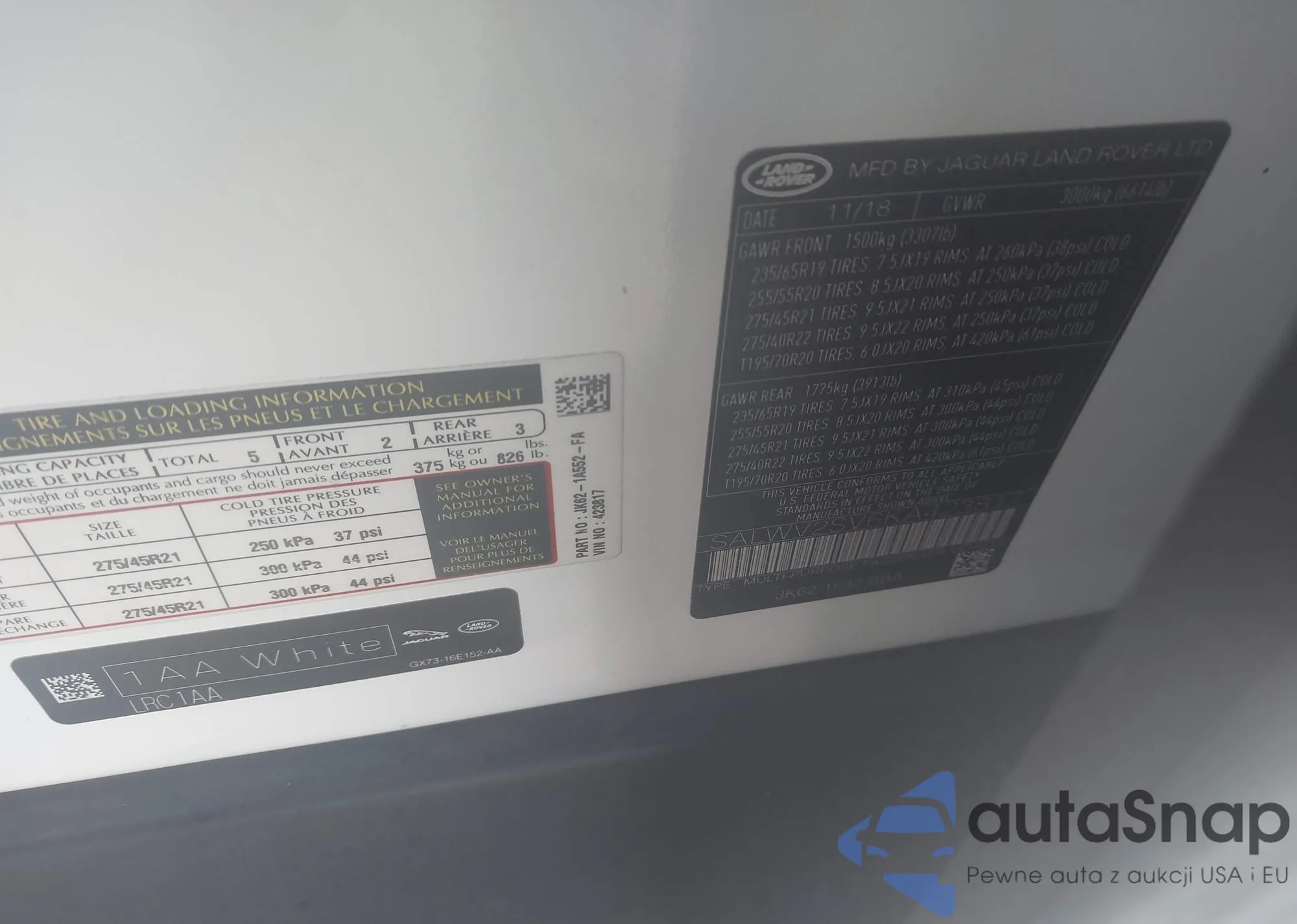 LOT: 44350910 VIN: SALWV2SV6KA423817