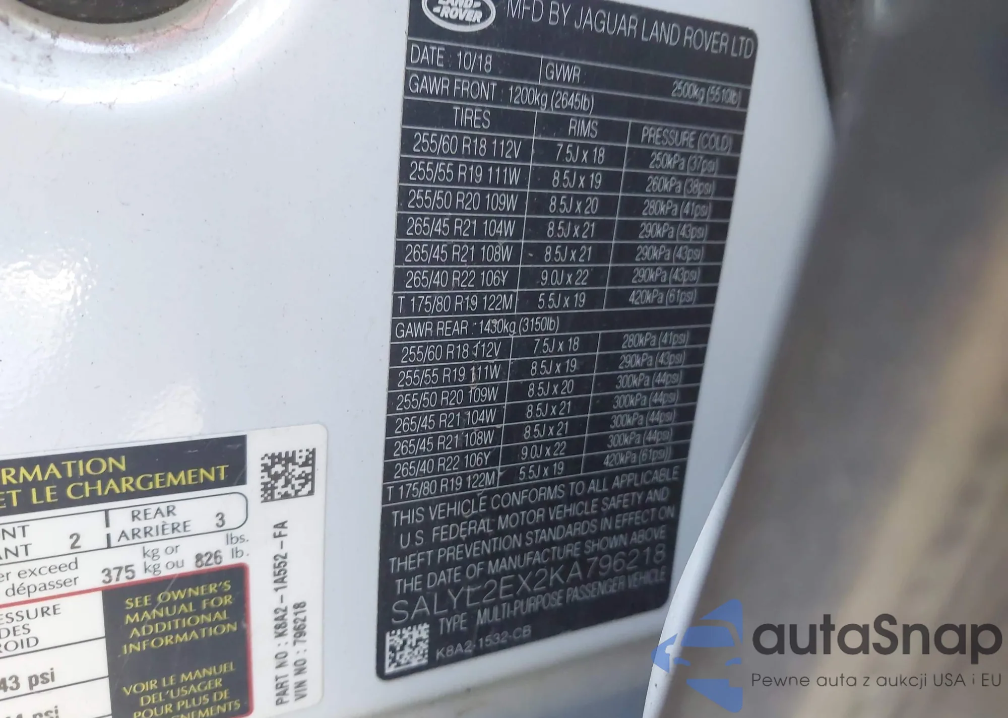 • VIN SALYL2EX2KA796218