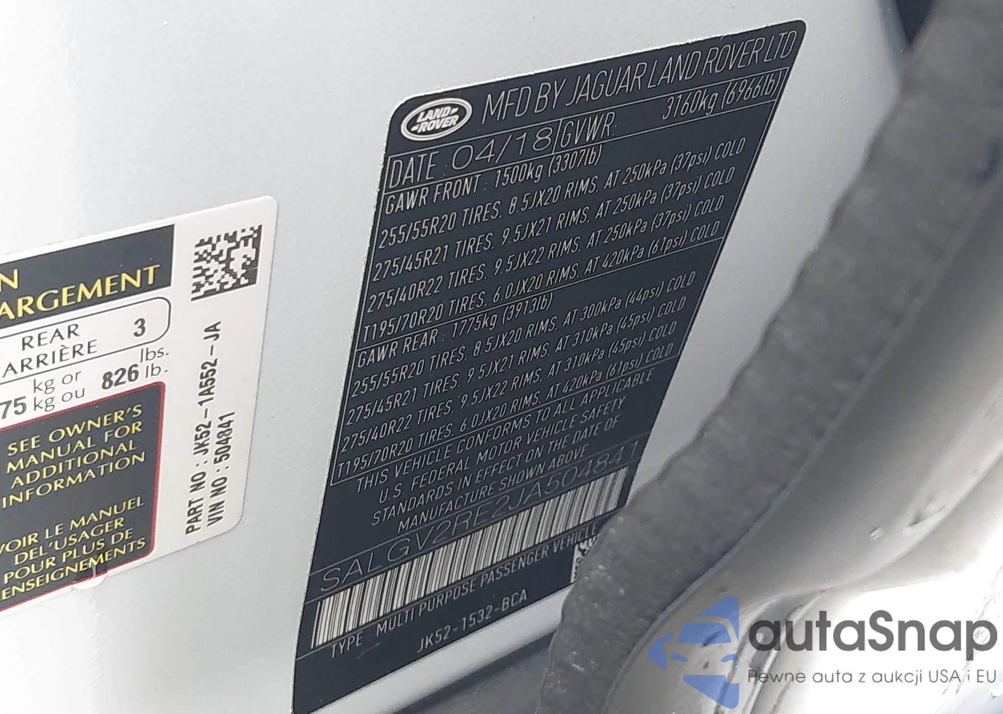 • VIN SALGV2RE2JA504841