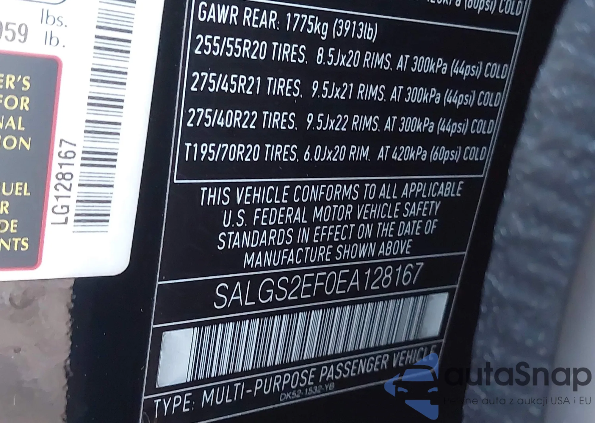 LOT: 44217610 VIN: SALGS2EF0EA128167