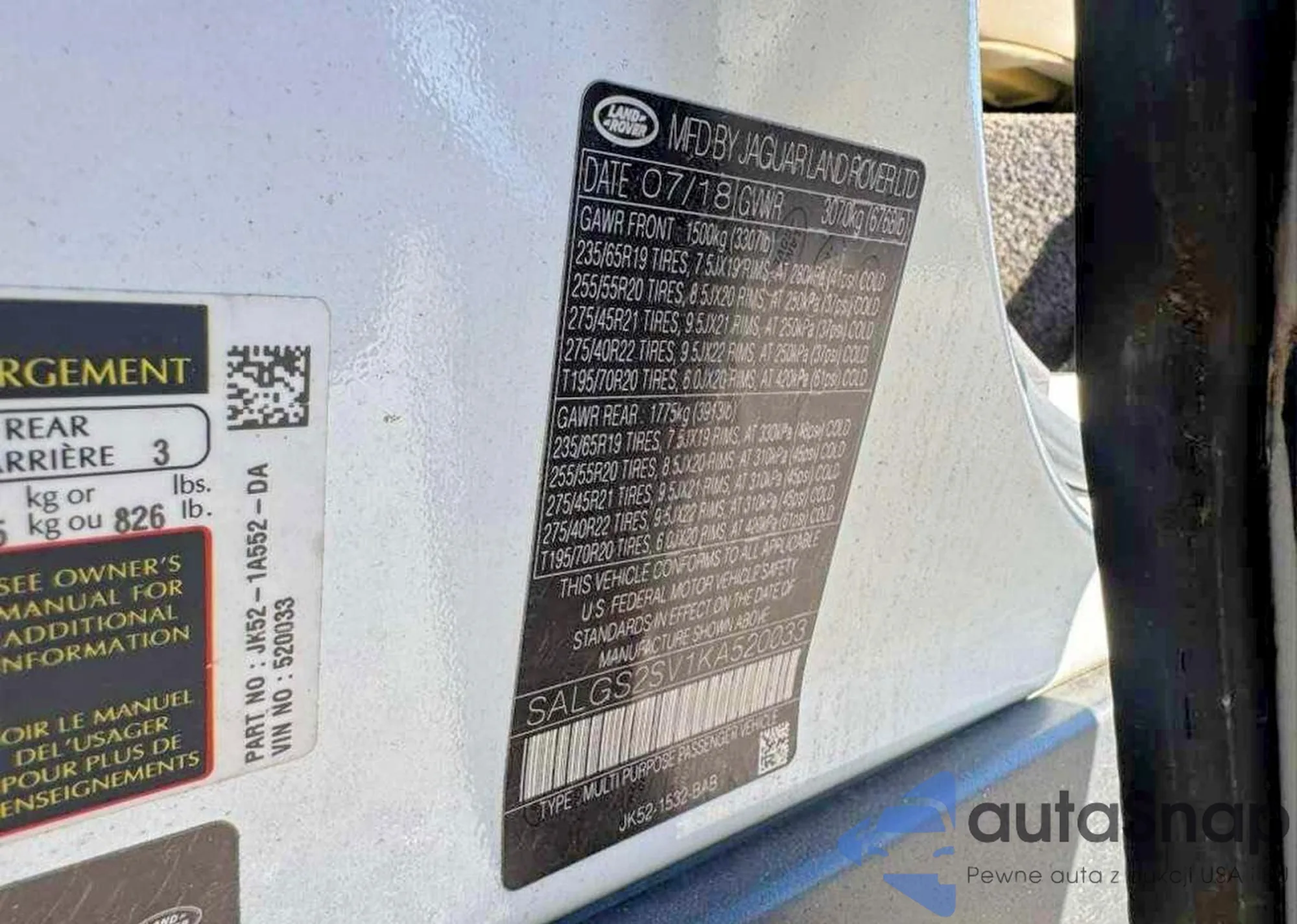 LOT: 76870535 VIN: SALGS2SV1KA520033