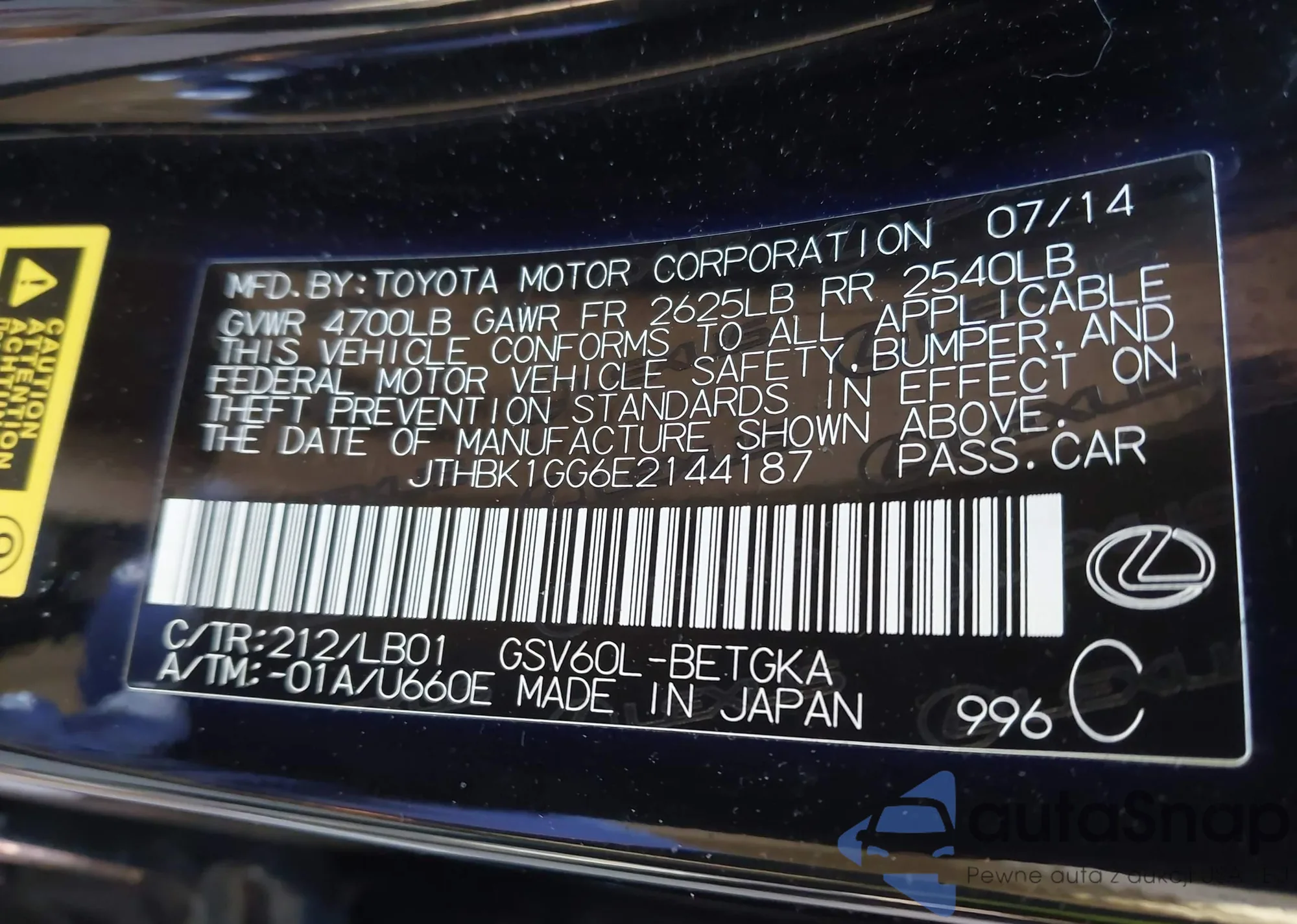 • VIN JTHBK1GG6E2144187