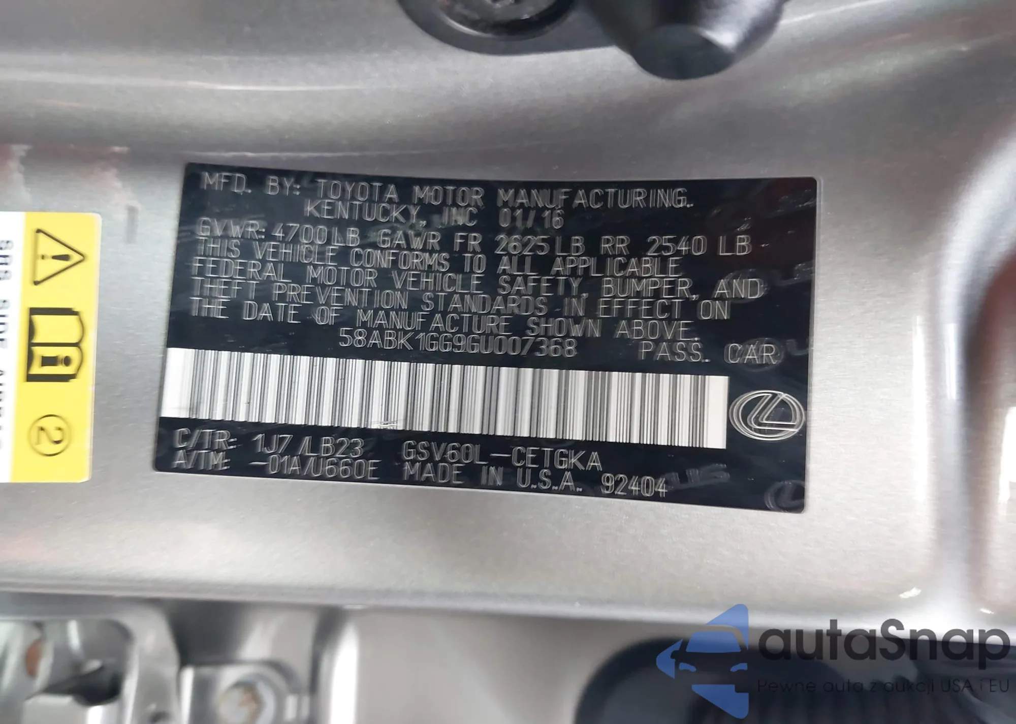 LOT: 44171338 VIN: JTHBW1GG7G2123873