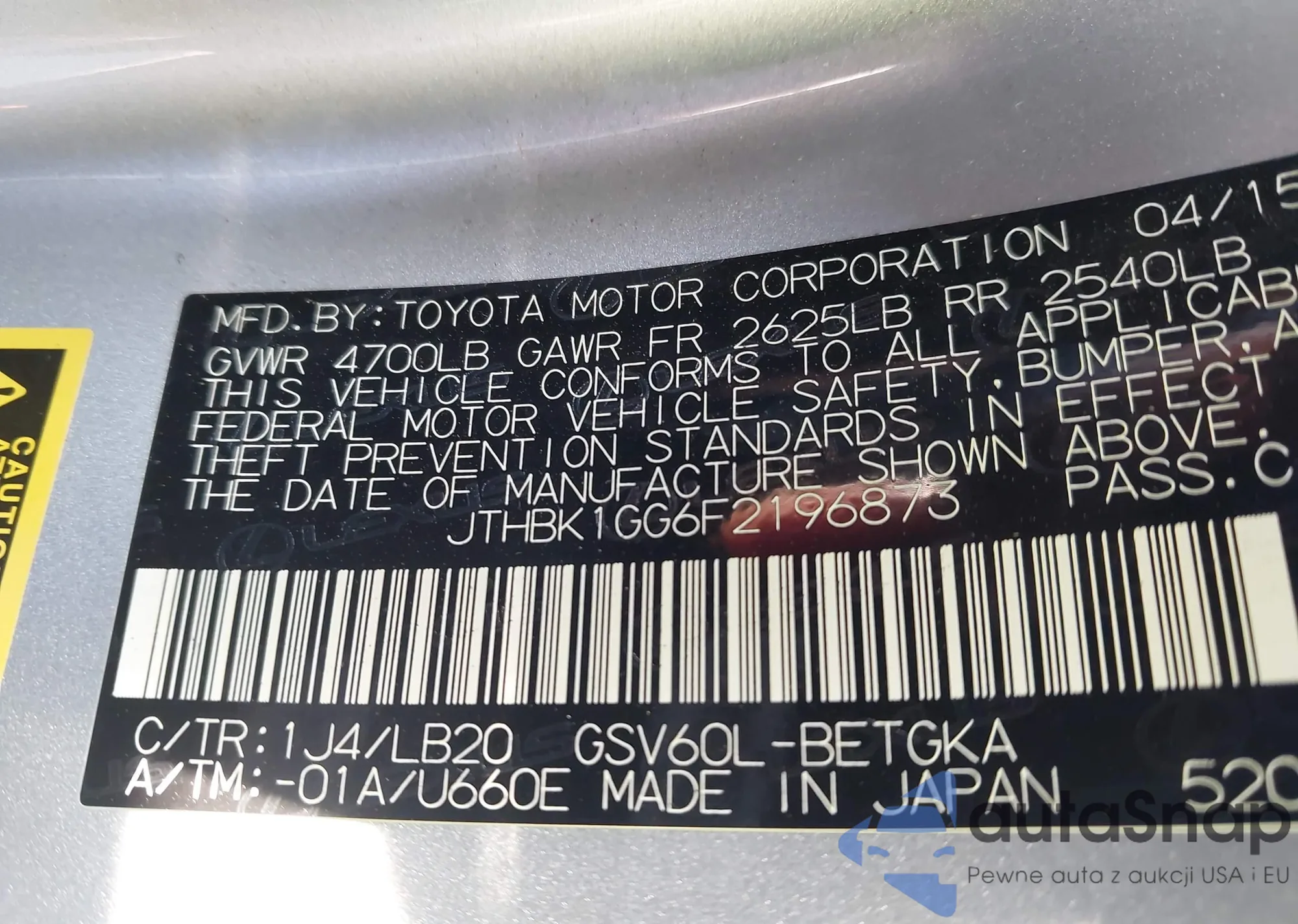 LOT: 44176573 VIN: JTHBK1GG6F2196873