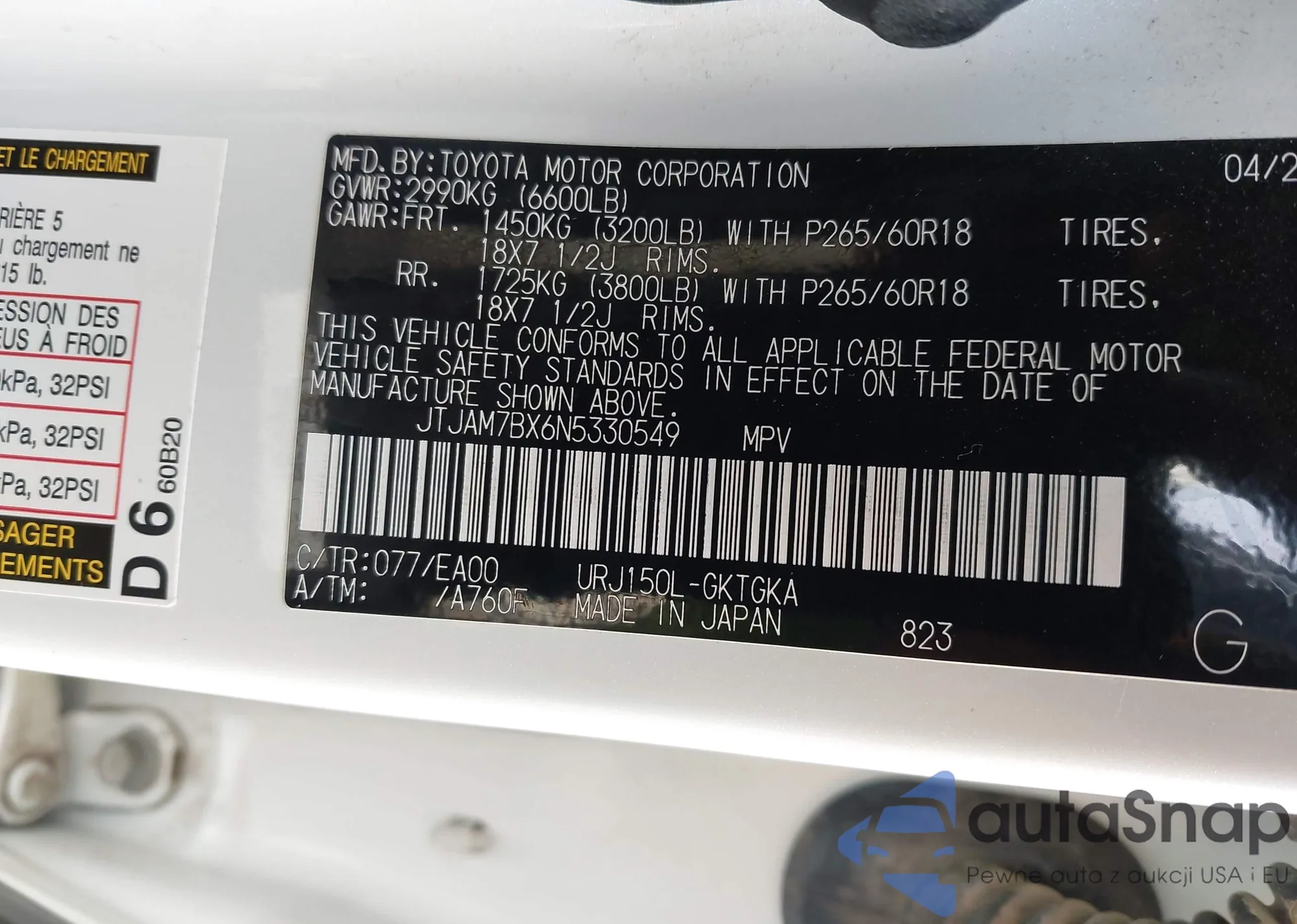 LOT: 44411952 VIN: JTJAM7BX6N5330549